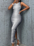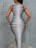 Bold and Beautiful: Black and White Allover Print Bodycon Dress