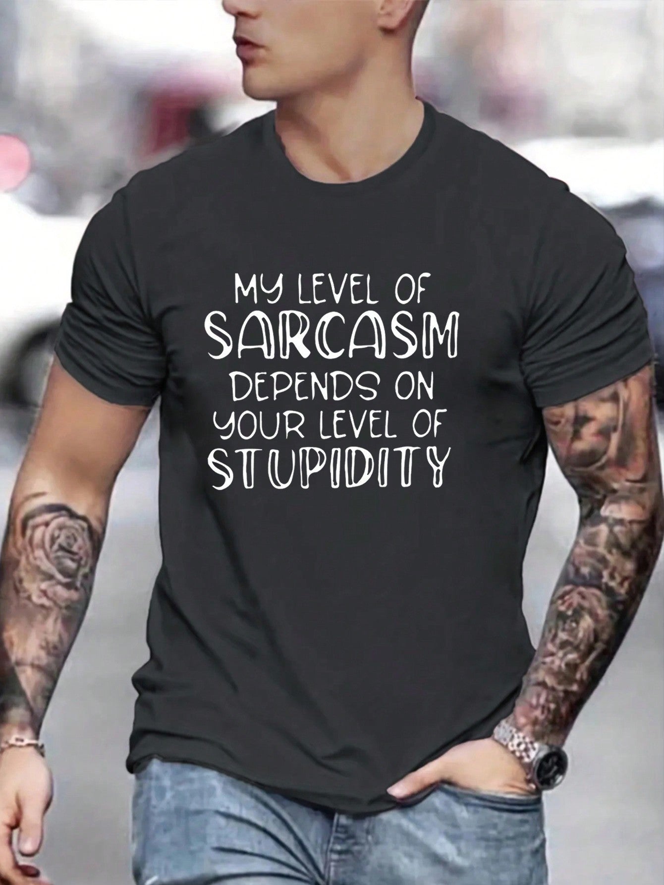 This Bold and Stylish: Men's Slogan Graphic Tee is the perfect addition to any man's wardrobe. With a bold and stylish design, it will surely make a statement. Made from high-quality materials, it offers comfort and durability. Show off your personality with this trendy and eye-catching tee.
