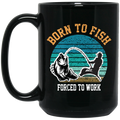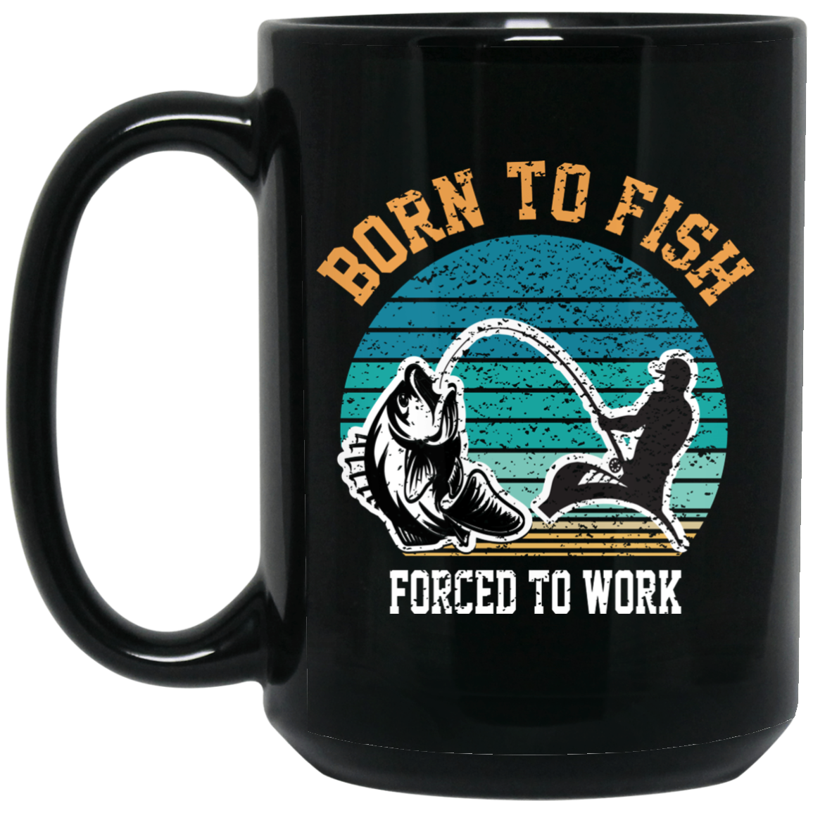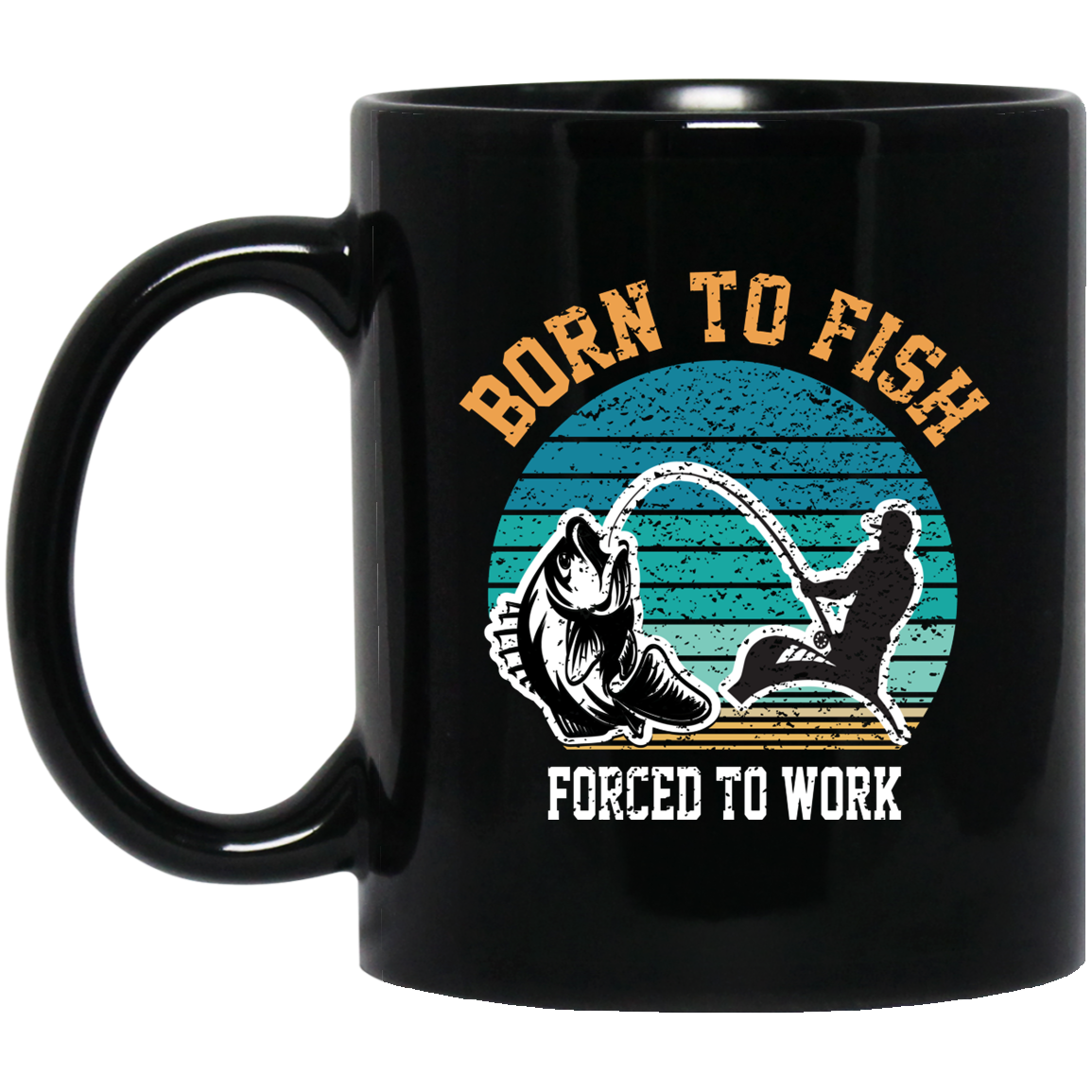 Born To Fish Forced To Work, Retro Fishing, Fishing Man Black Mug