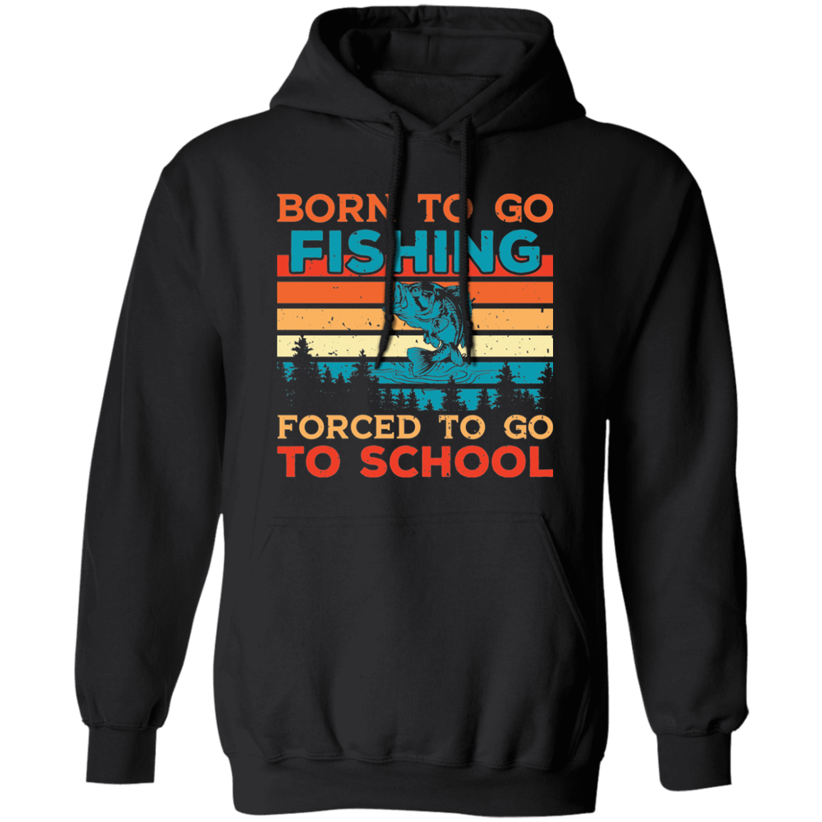 Born To Go Fishing, Force To Go To School, Retro Fishing Pullover Hoodie
