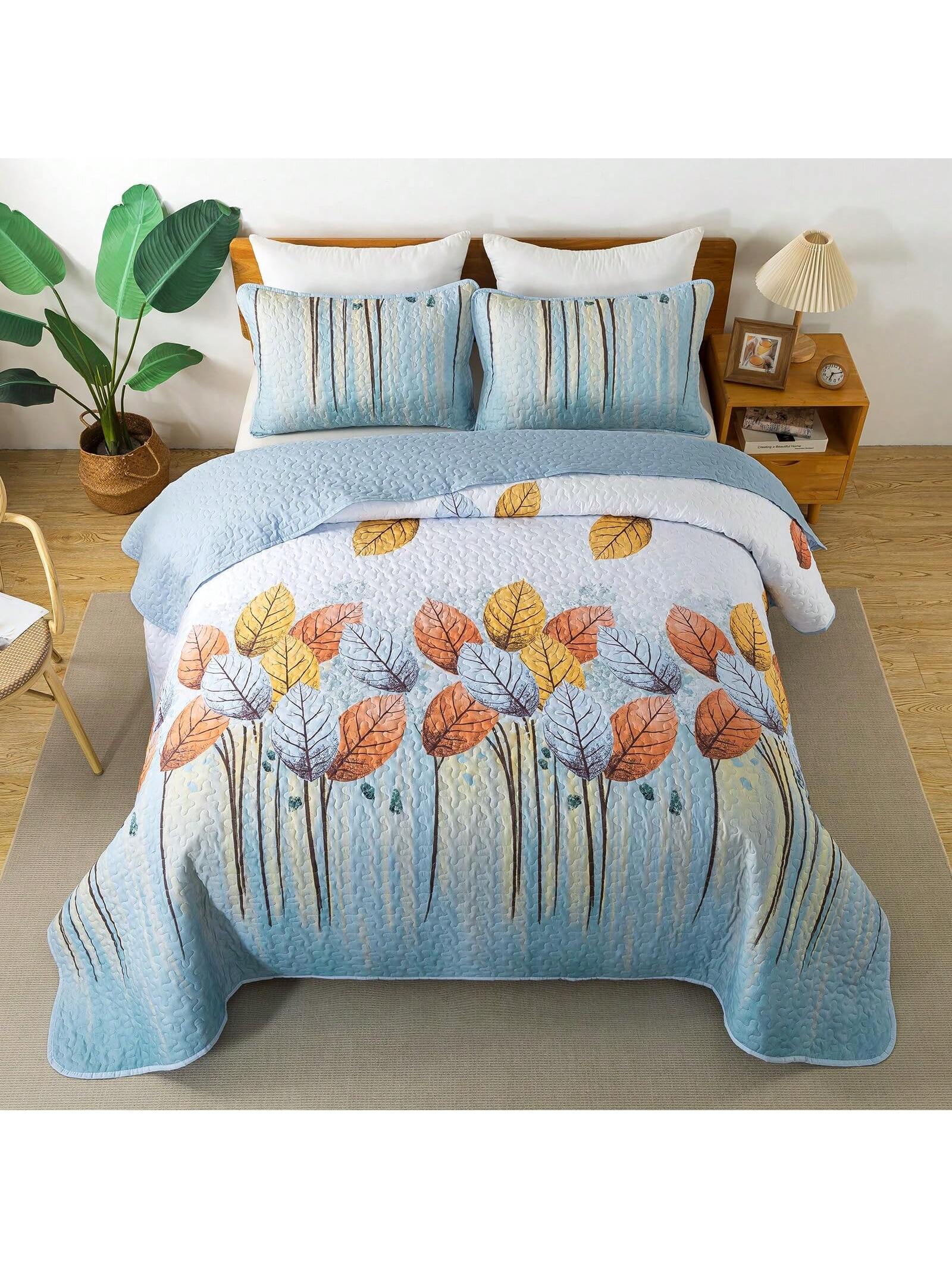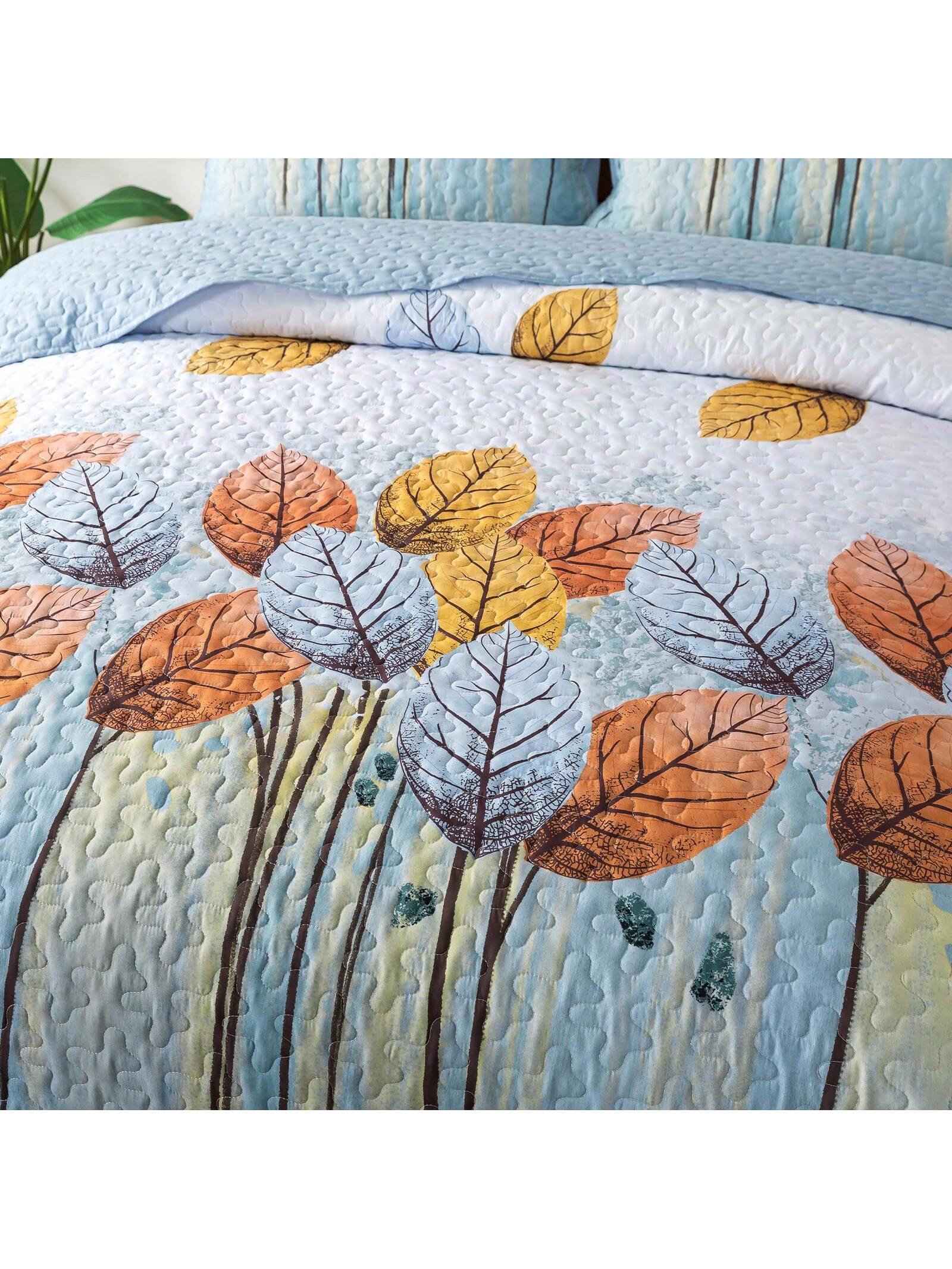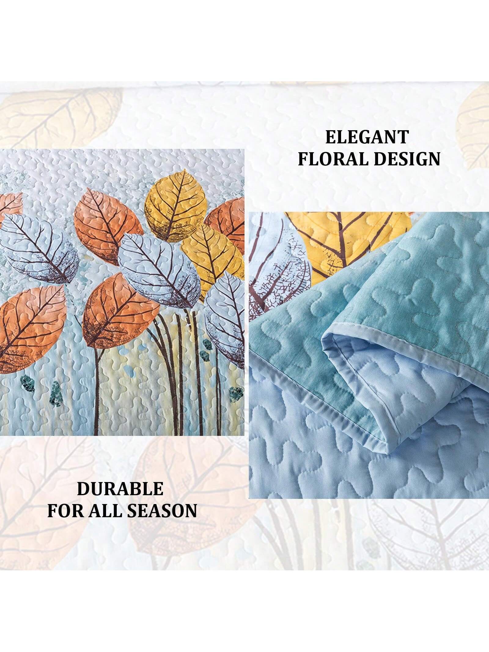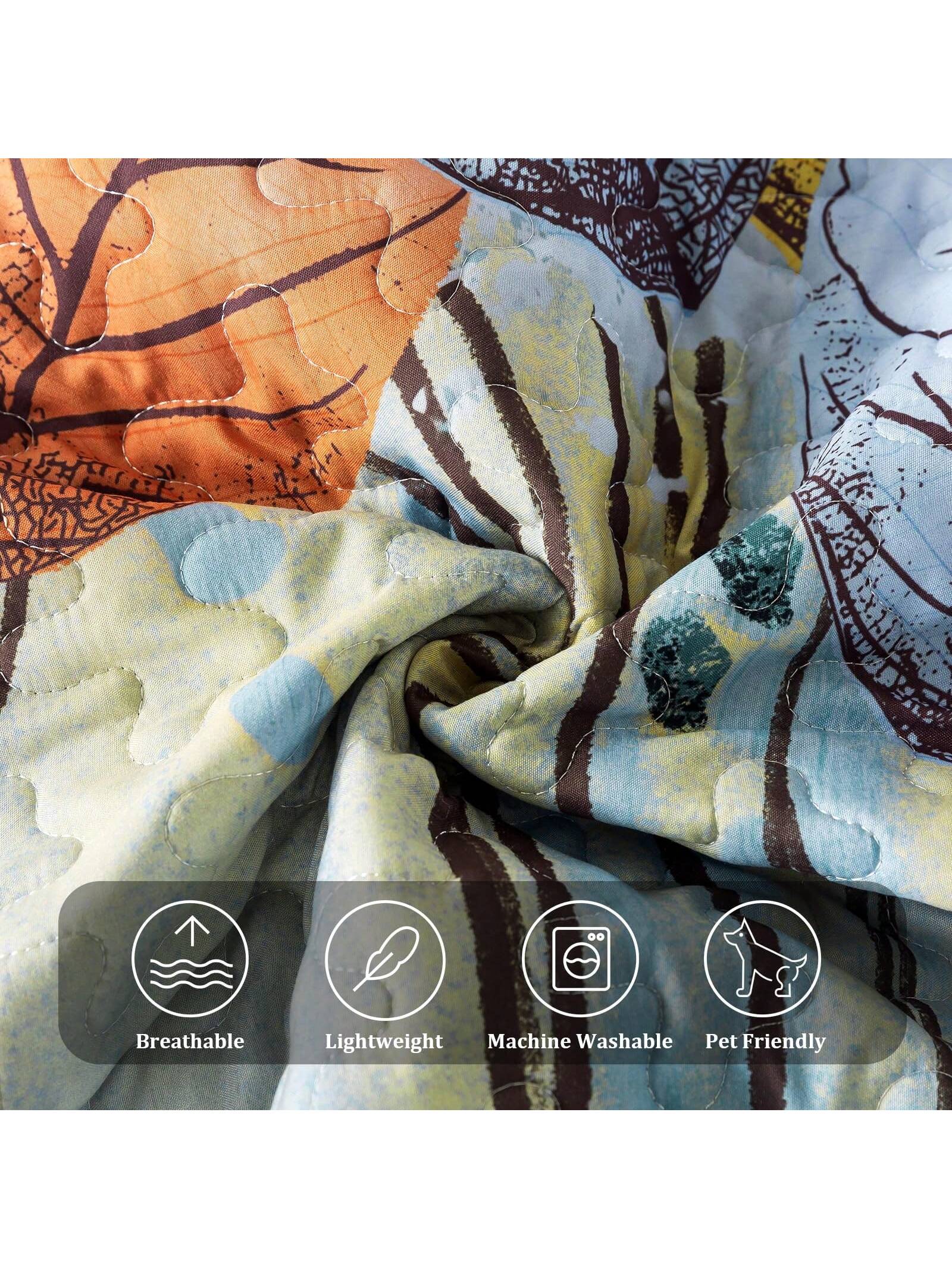 Botanical Bliss: Queen Size Colorful Leaves Quilt Set with Pillow Shams