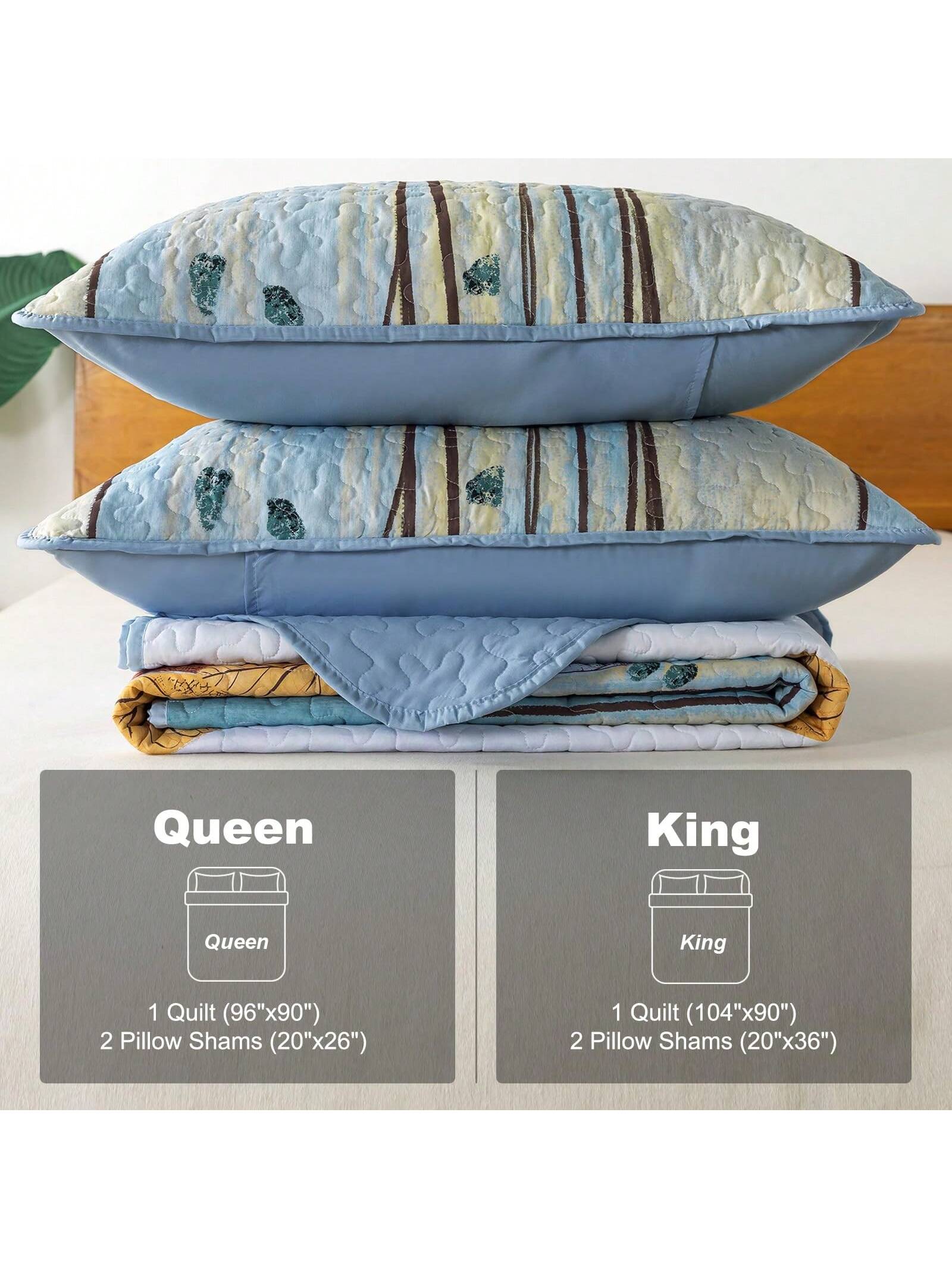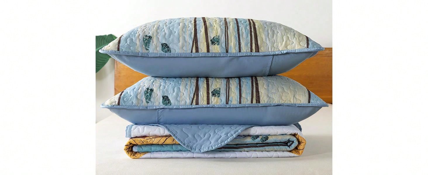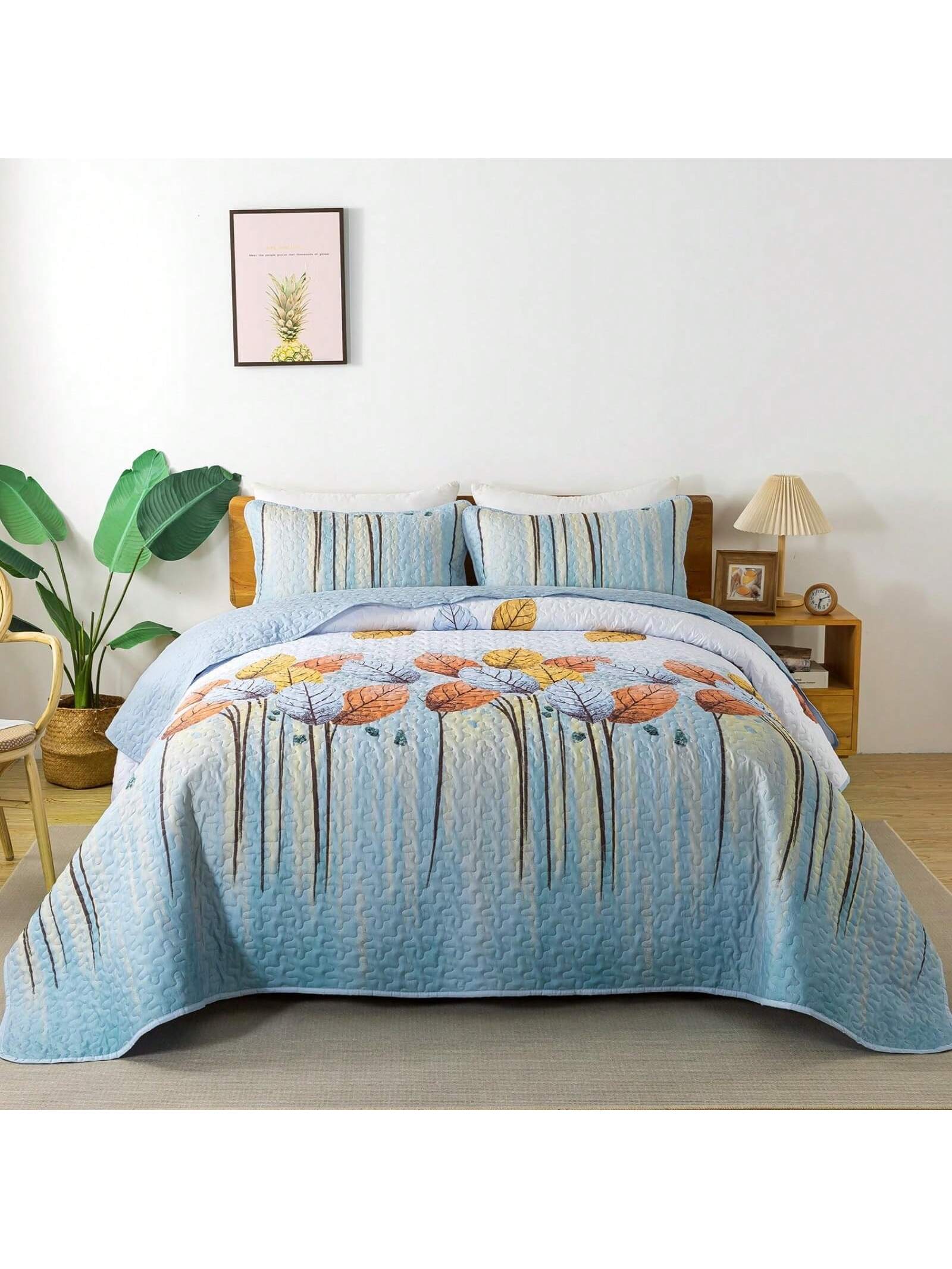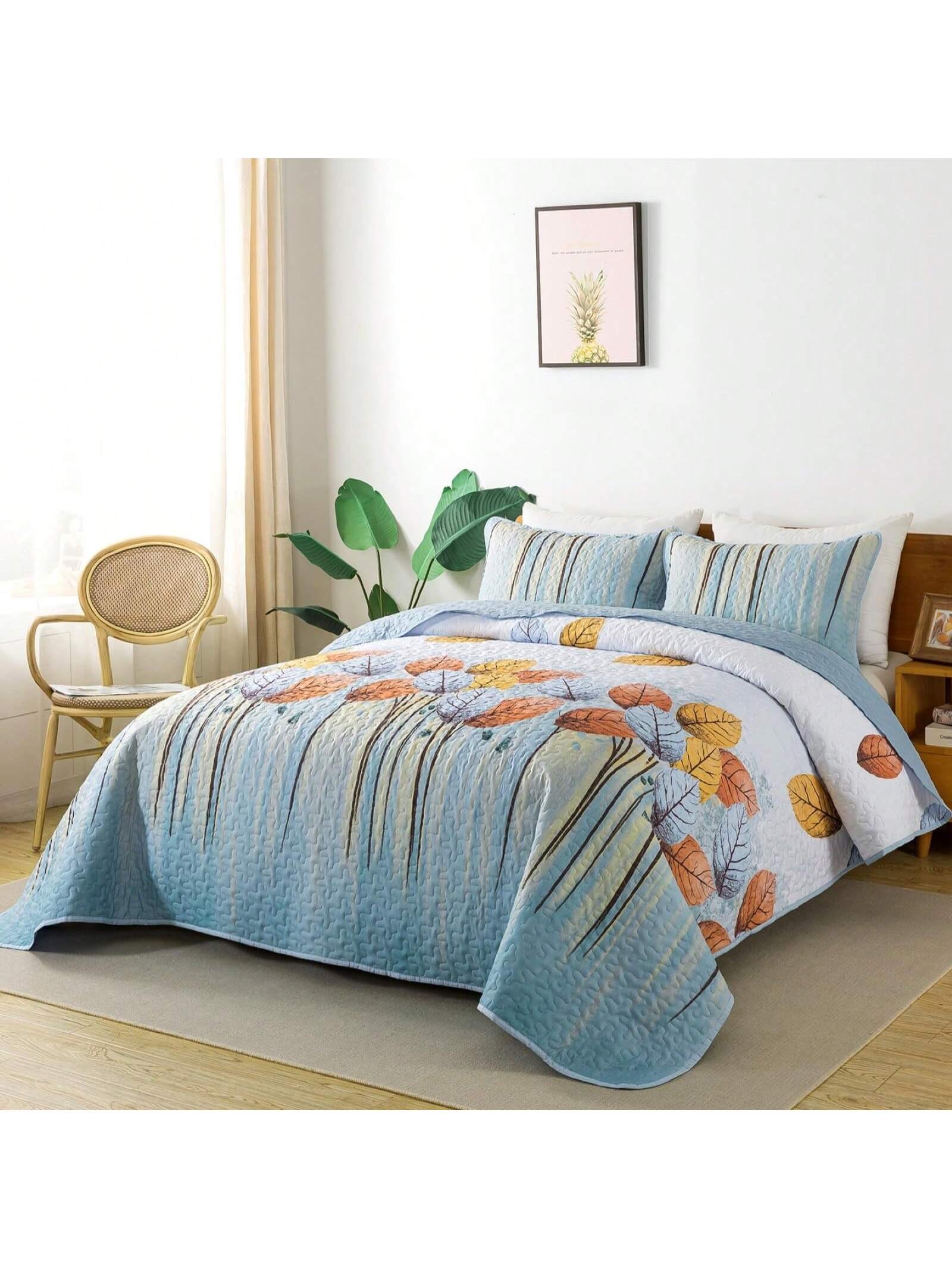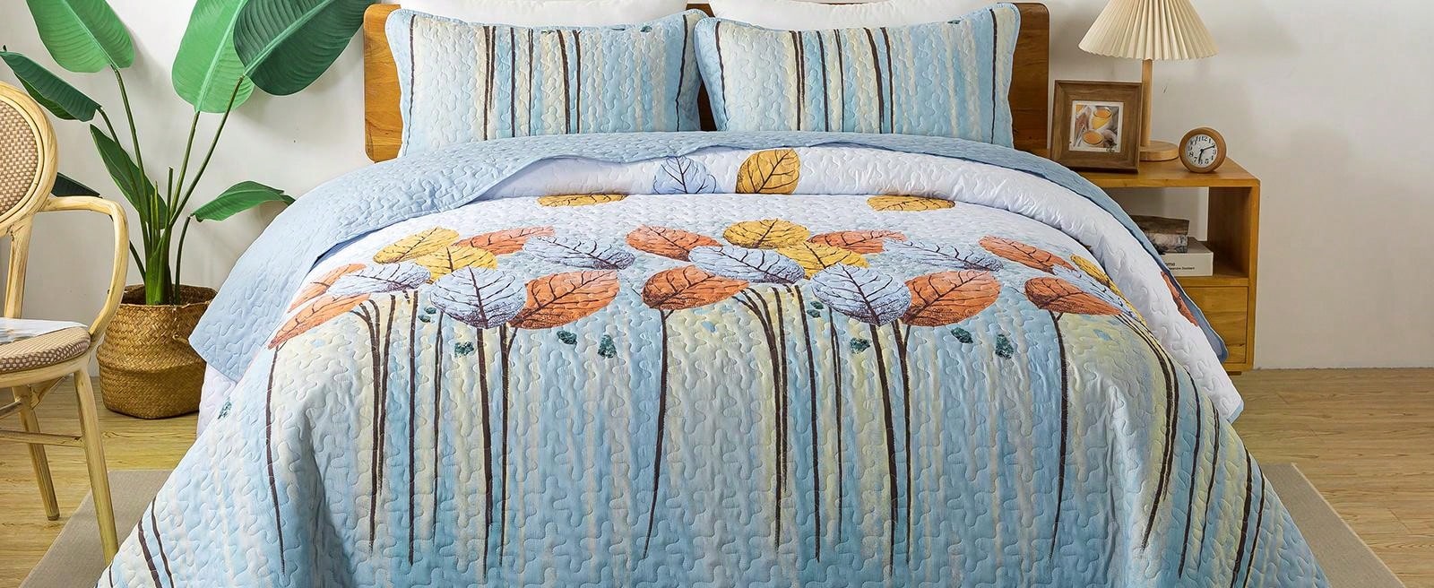 Botanical Bliss: Queen Size Colorful Leaves Quilt Set with Pillow Shams