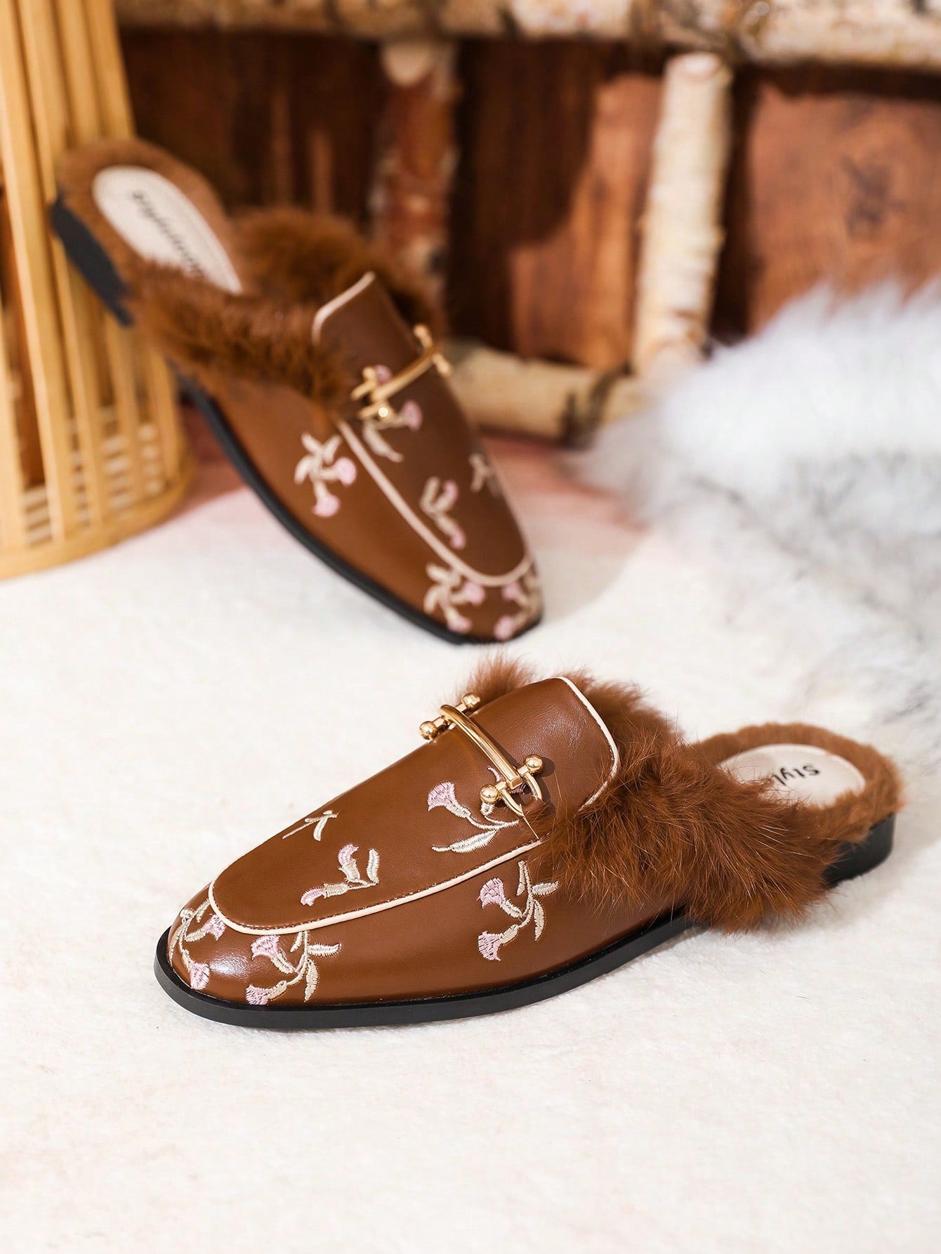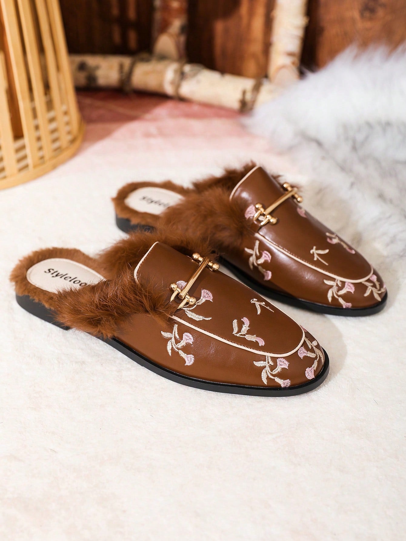 Brown Embroidered Half Slippers: Stylish and Comfortable Flats for Women