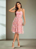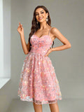 Bubblegum Dreams: Women's Colorful Sequined 3D Flower Dress