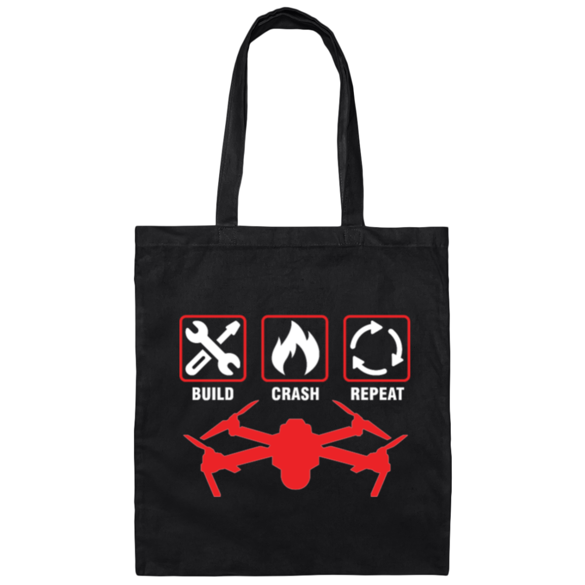 Build Crash, Repeat Drone, Love Drone, Vintage Drone, Destroy Building Canvas Tote Bag
