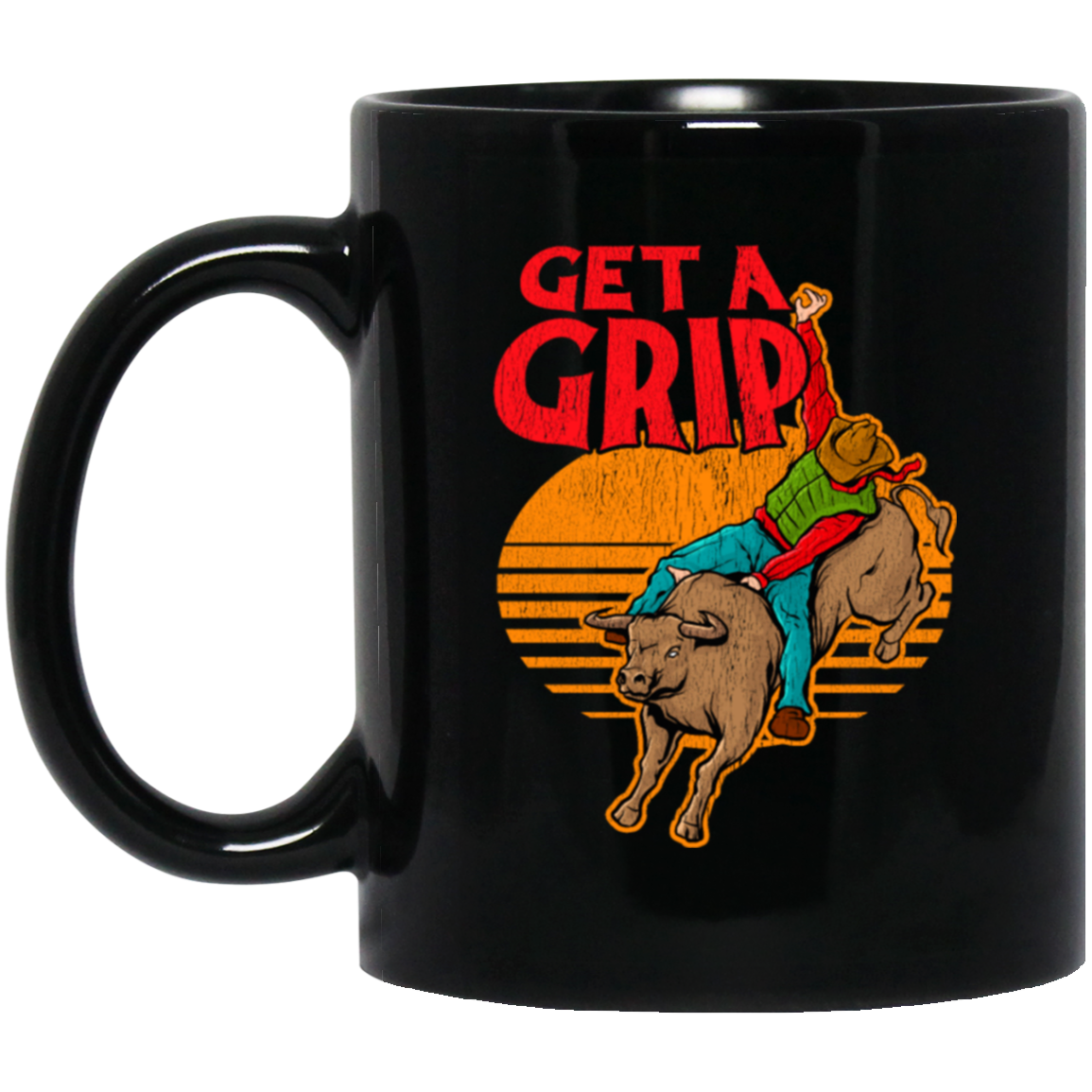 Bull Riding, Get A Grip, Funny Bull, Riding Pun, Best Bull Lover Black Mug