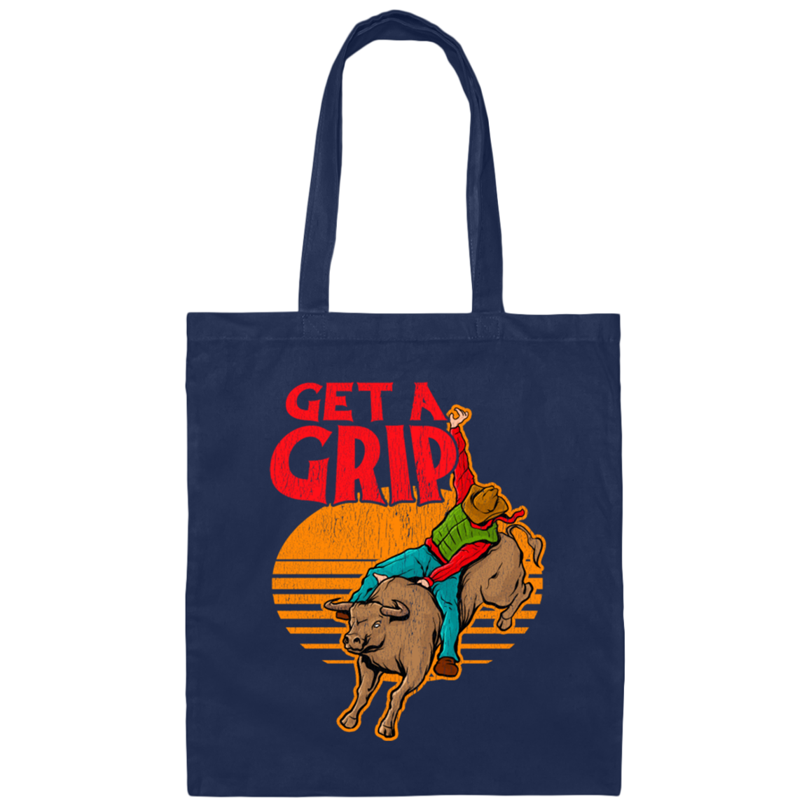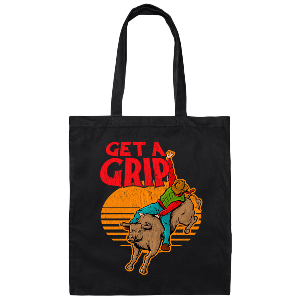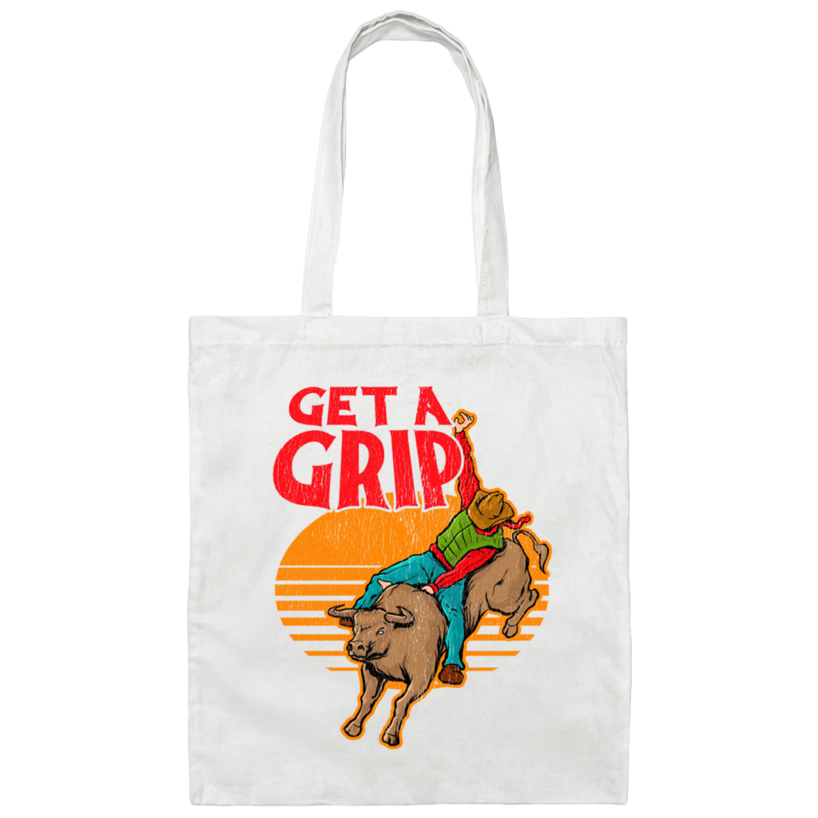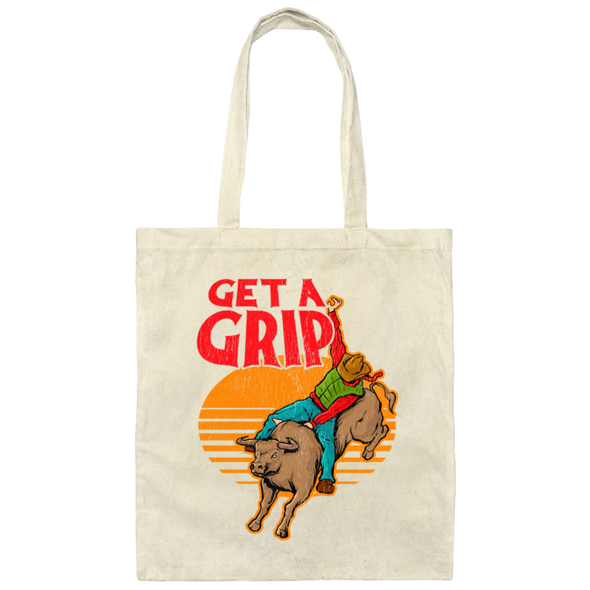 Bull Riding, Get A Grip, Funny Bull, Riding Pun, Best Bull Lover Canvas Tote Bag
