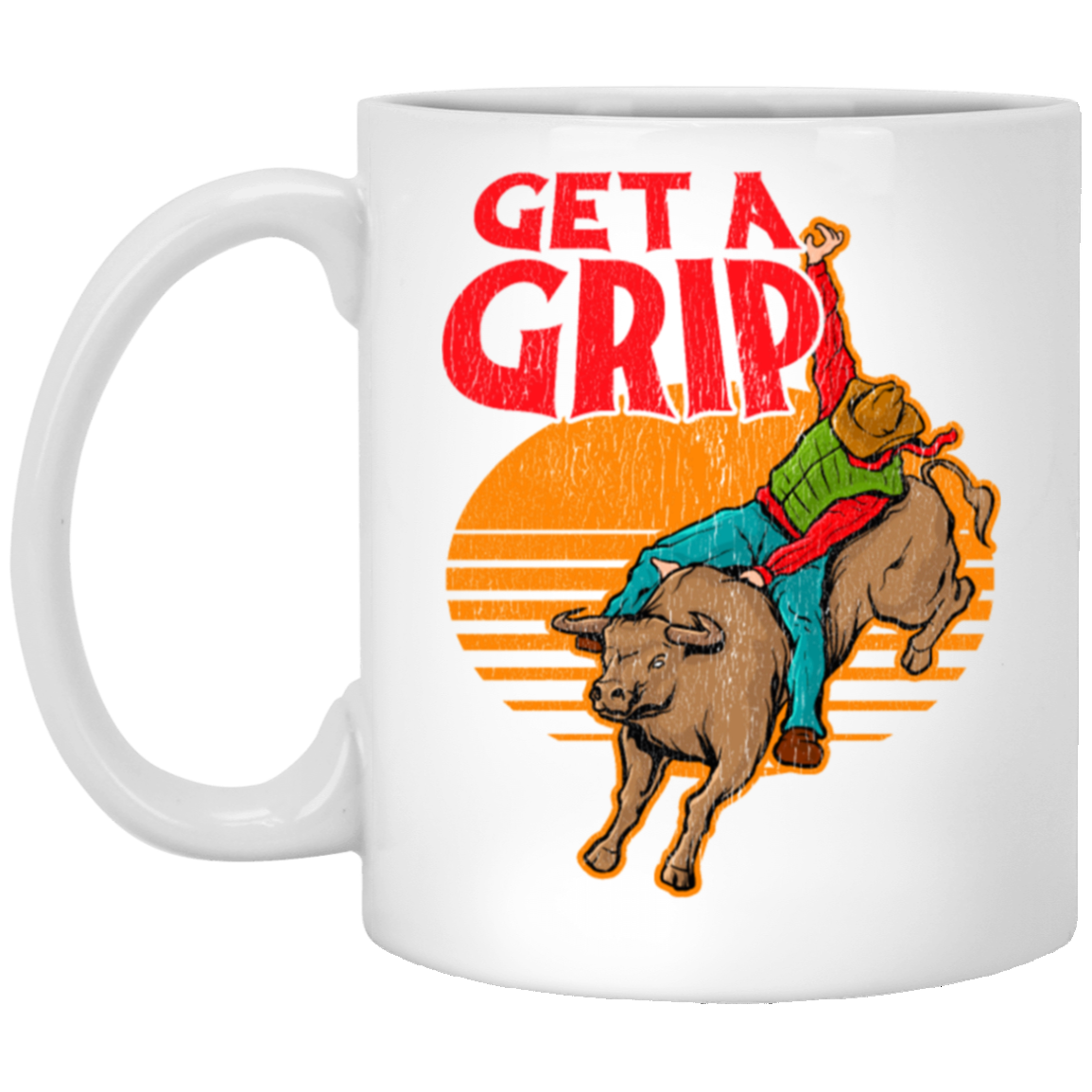 Bull Riding, Get A Grip, Funny Bull, Riding Pun, Best Bull Lover White Mug