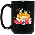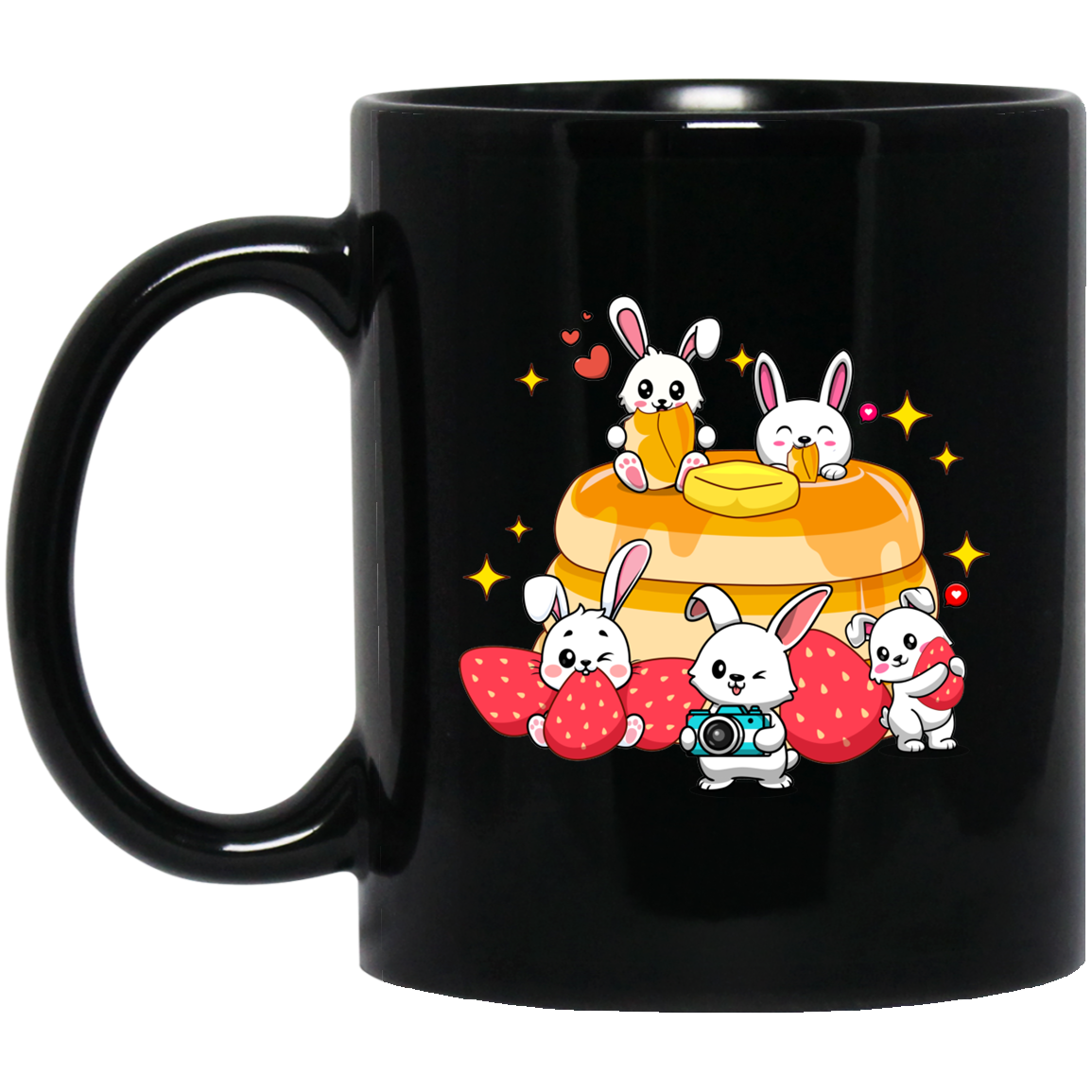 Bunnies With Pancake, Strawberries And Pancake Black Mug