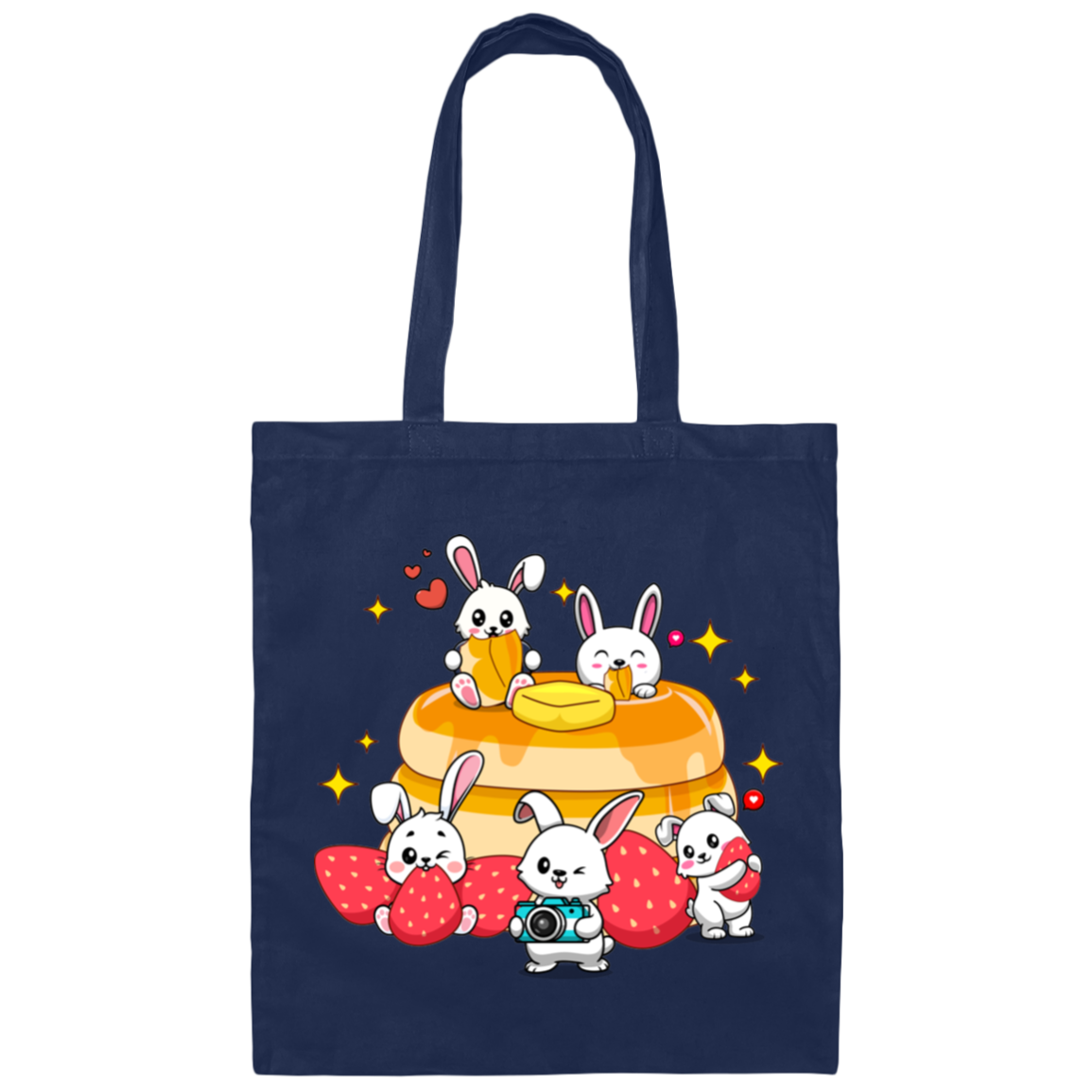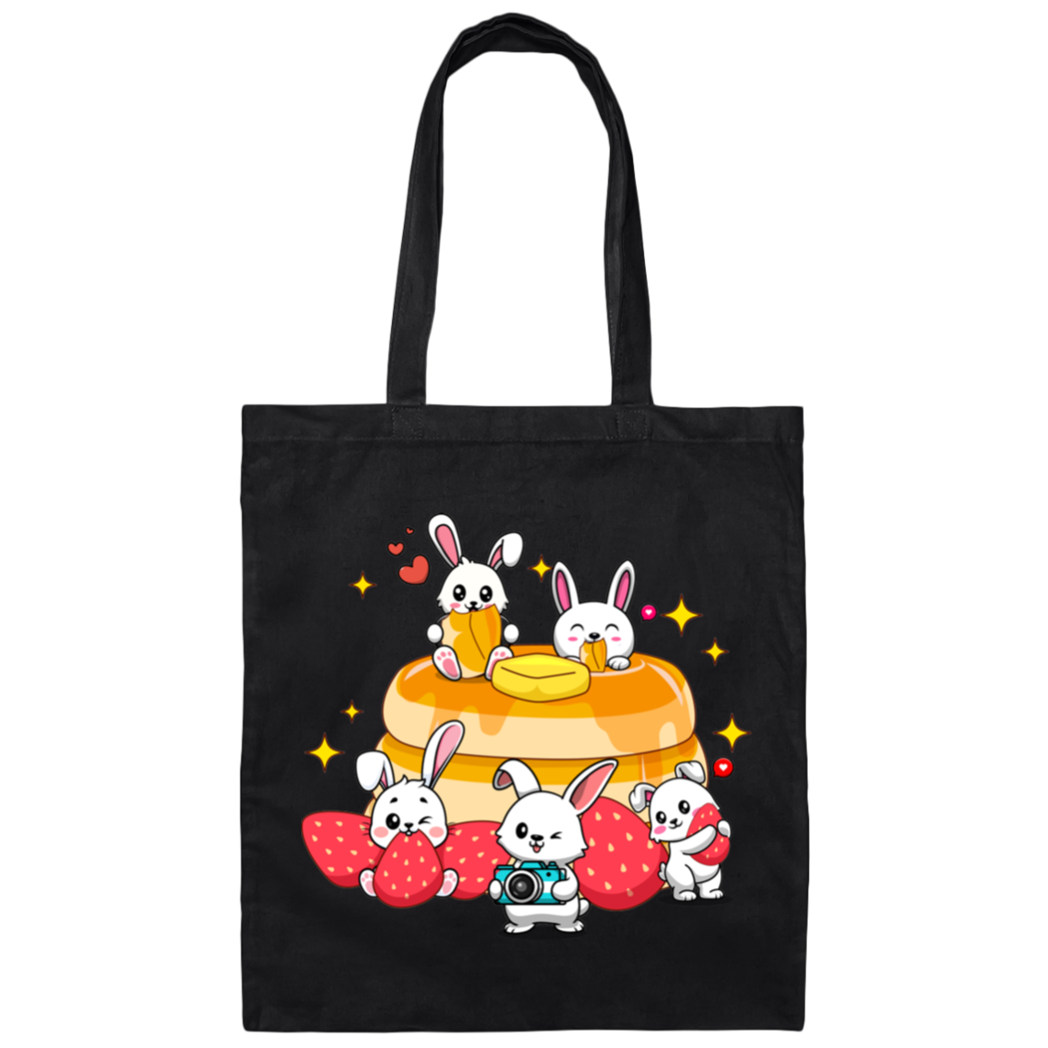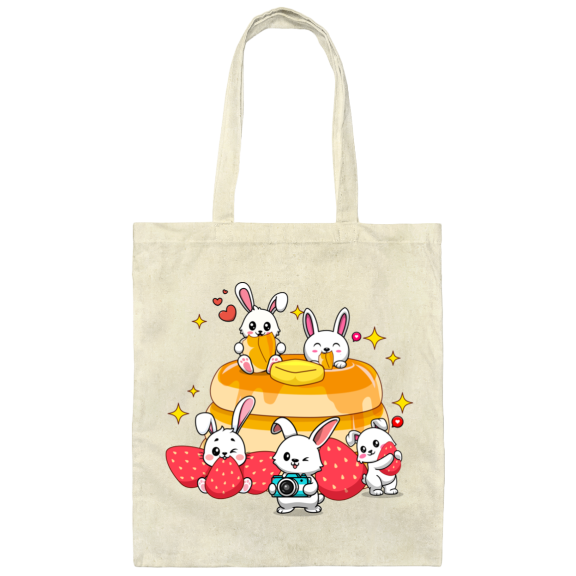Bunnies With Pancake, Strawberries And Pancake Canvas Tote Bag
