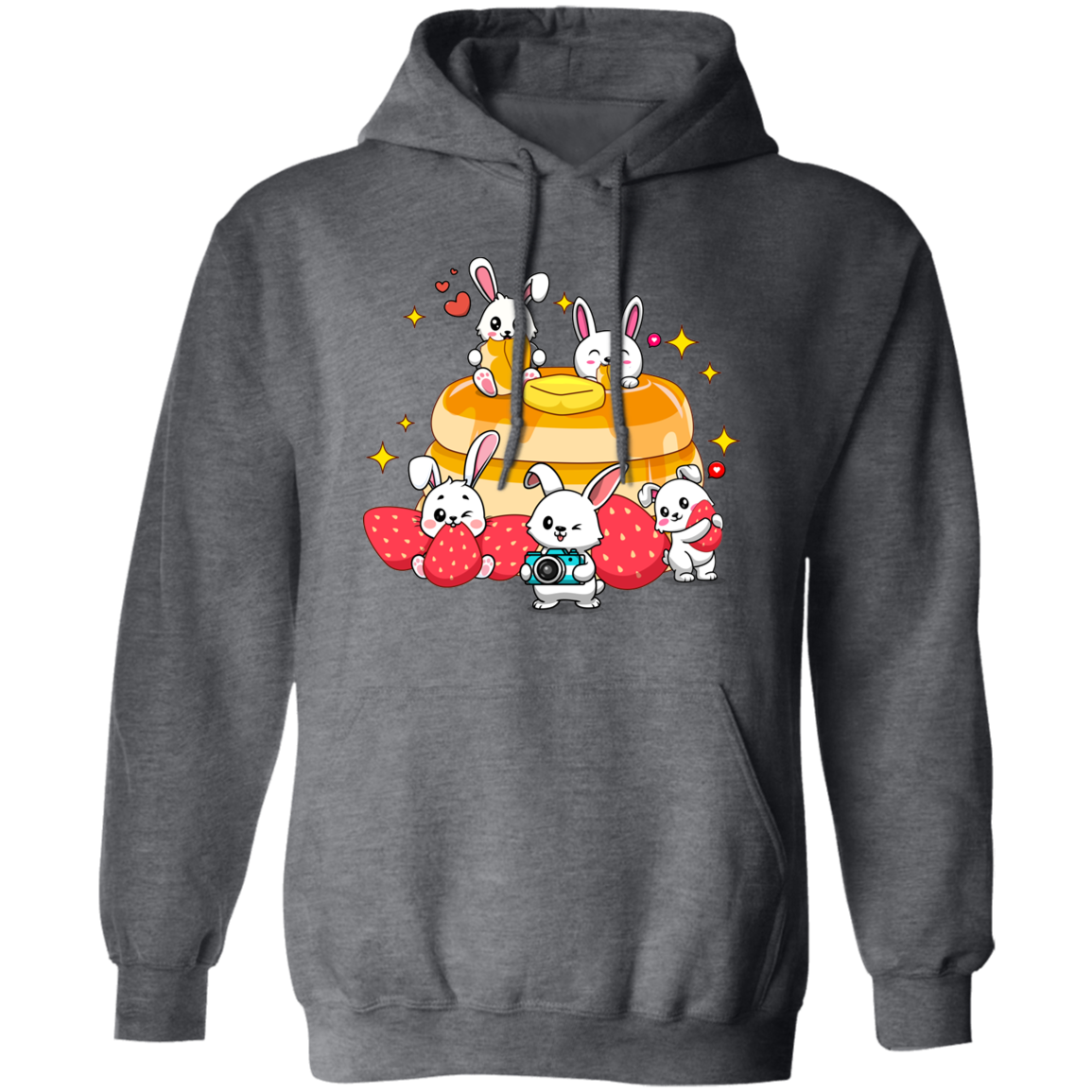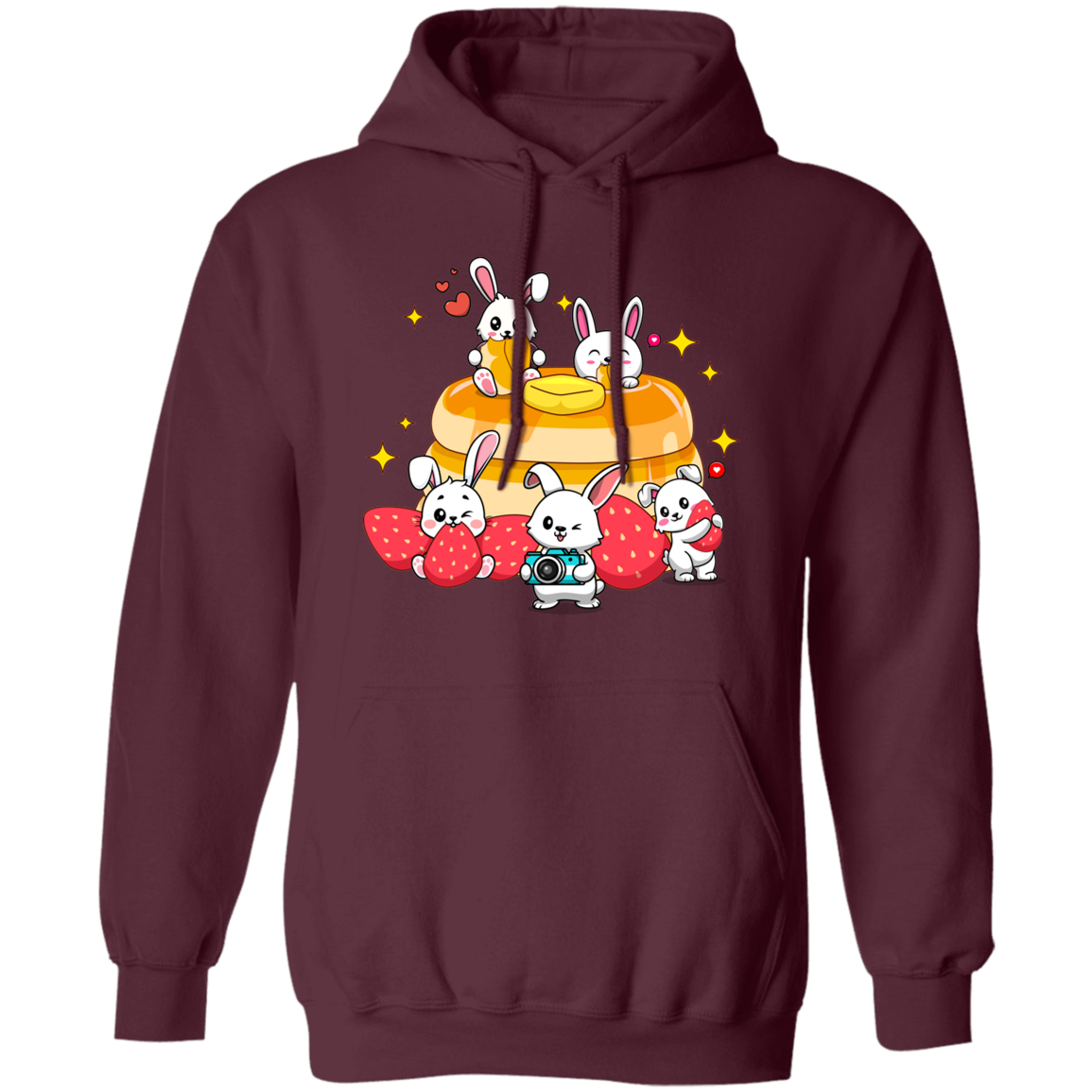 Bunnies With Pancake, Strawberries And Pancake Pullover Hoodie