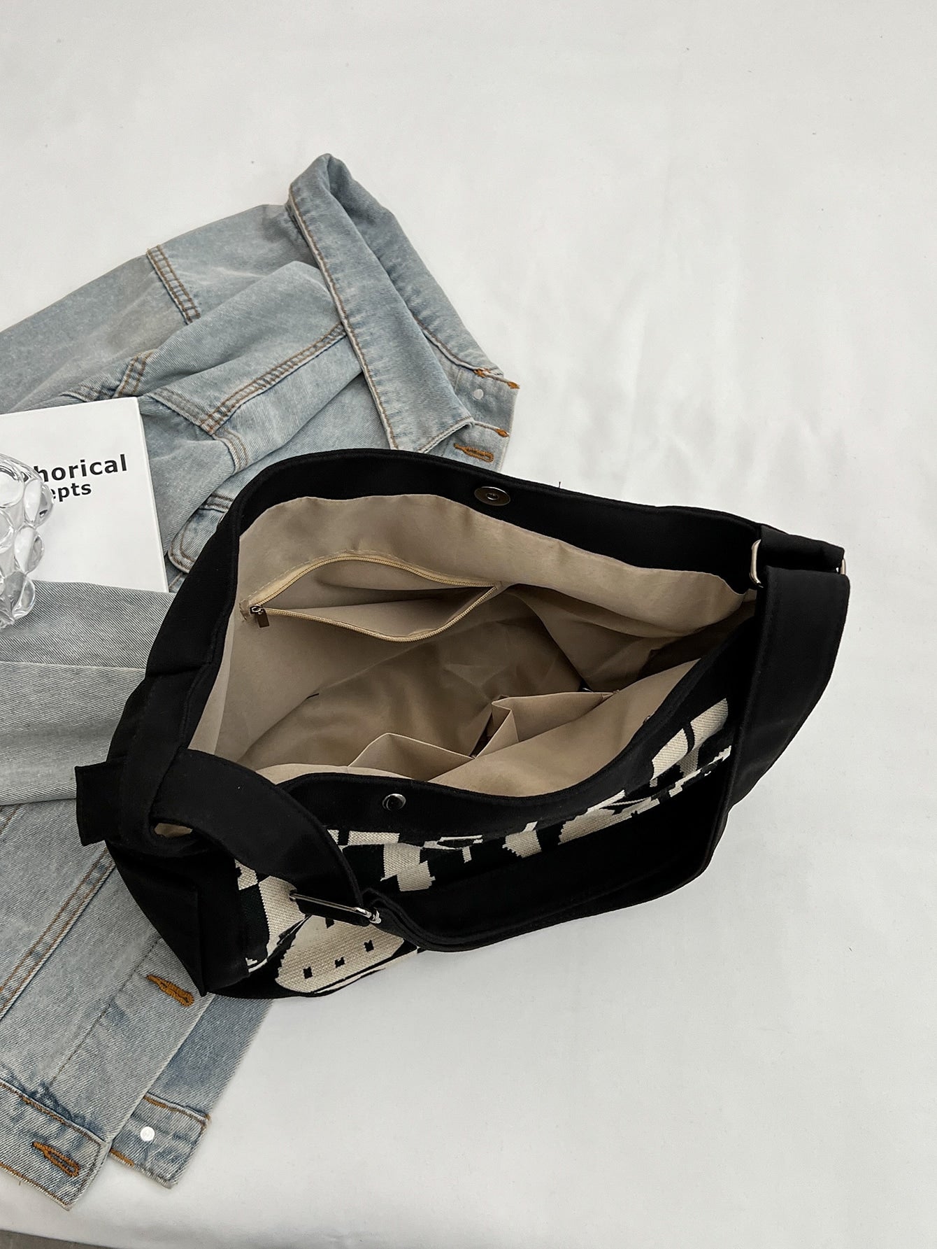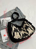 Bunny Decoration Canvas Shoulder Bag: Large Capacity Messenger Bag for Students, Walking & Festivals - Ideal Gifts