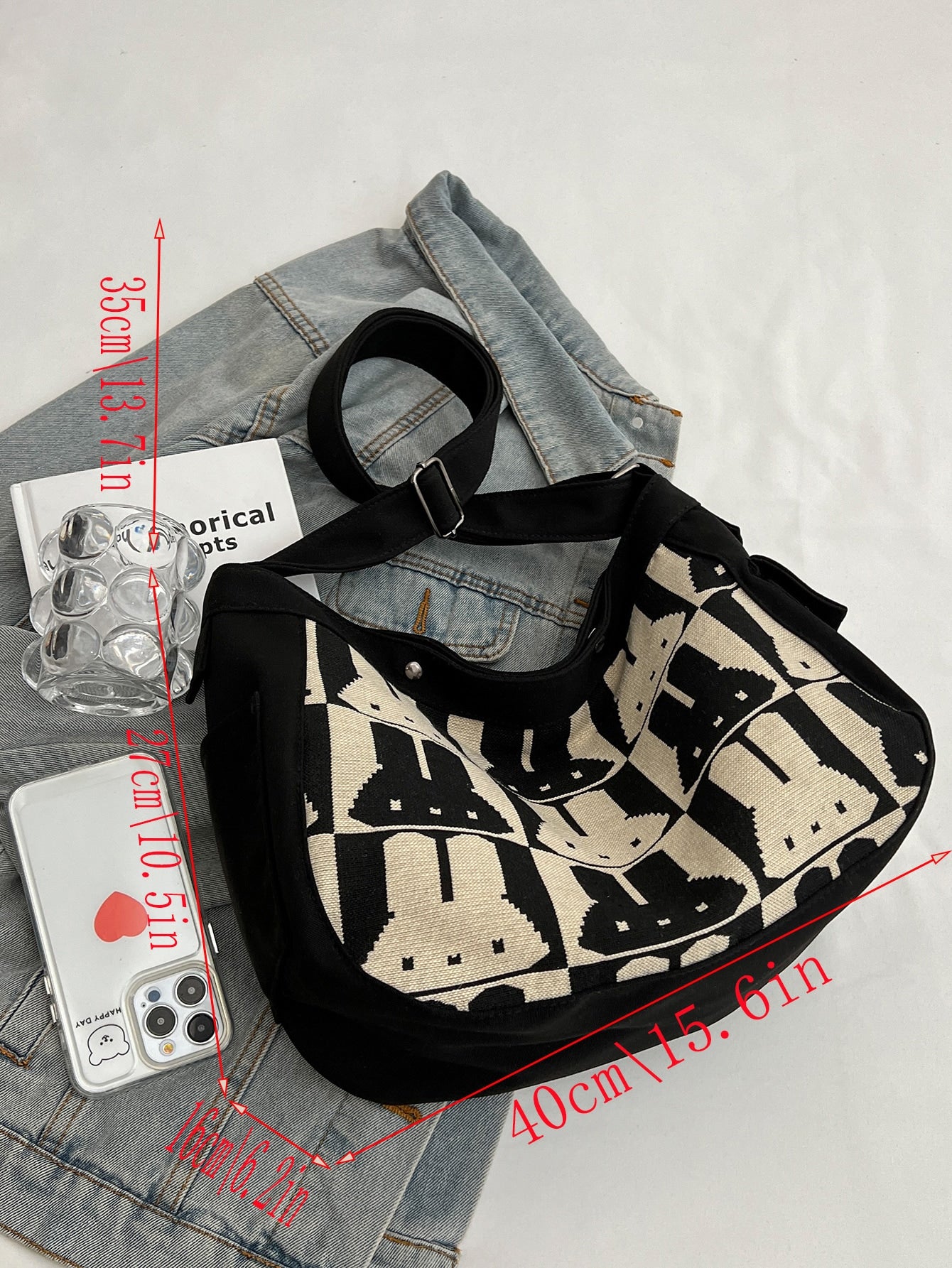 Carry all your essentials in style with our Bunny Decoration Canvas Shoulder Bag! With a large capacity, this messenger bag is perfect for students, walking, and festivals. Made with durable canvas and featuring a cute bunny design, it's not only functional but also makes for an ideal gift. Stay organized and look fashionable with our versatile bag.