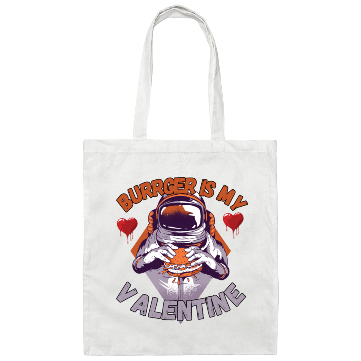 Burger Is My Valentine, Funny Valentine Gift Canvas Tote Bag