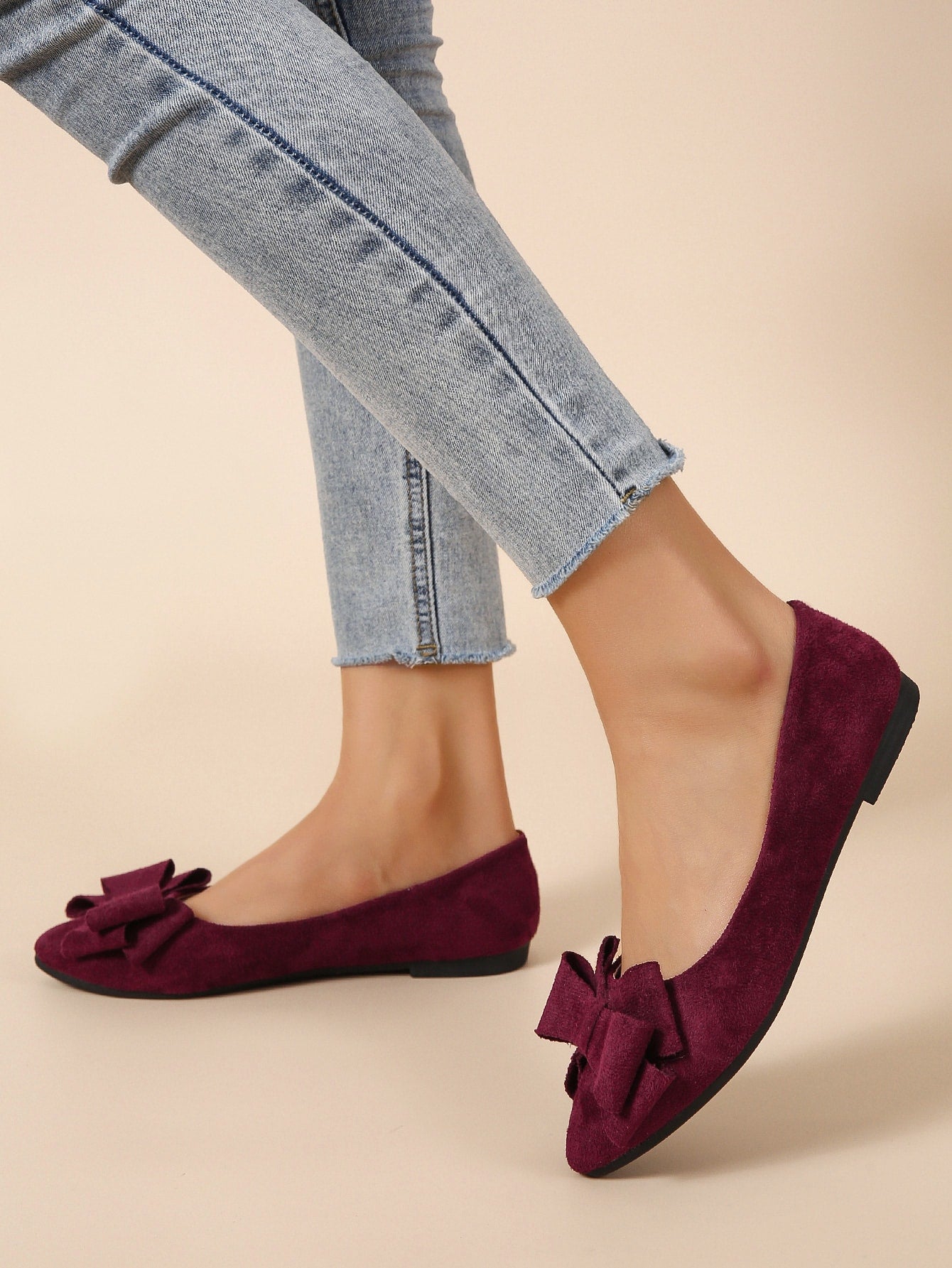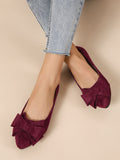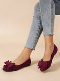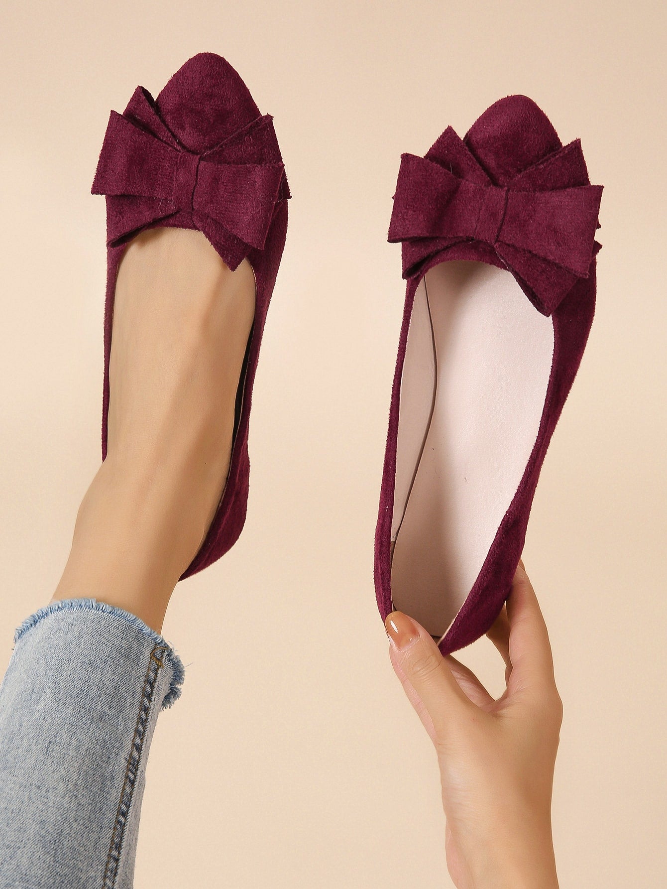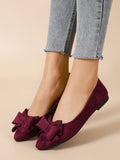 Burgundy Bow-Accent Pointed Toe Ballet Flats for Effortless Chic