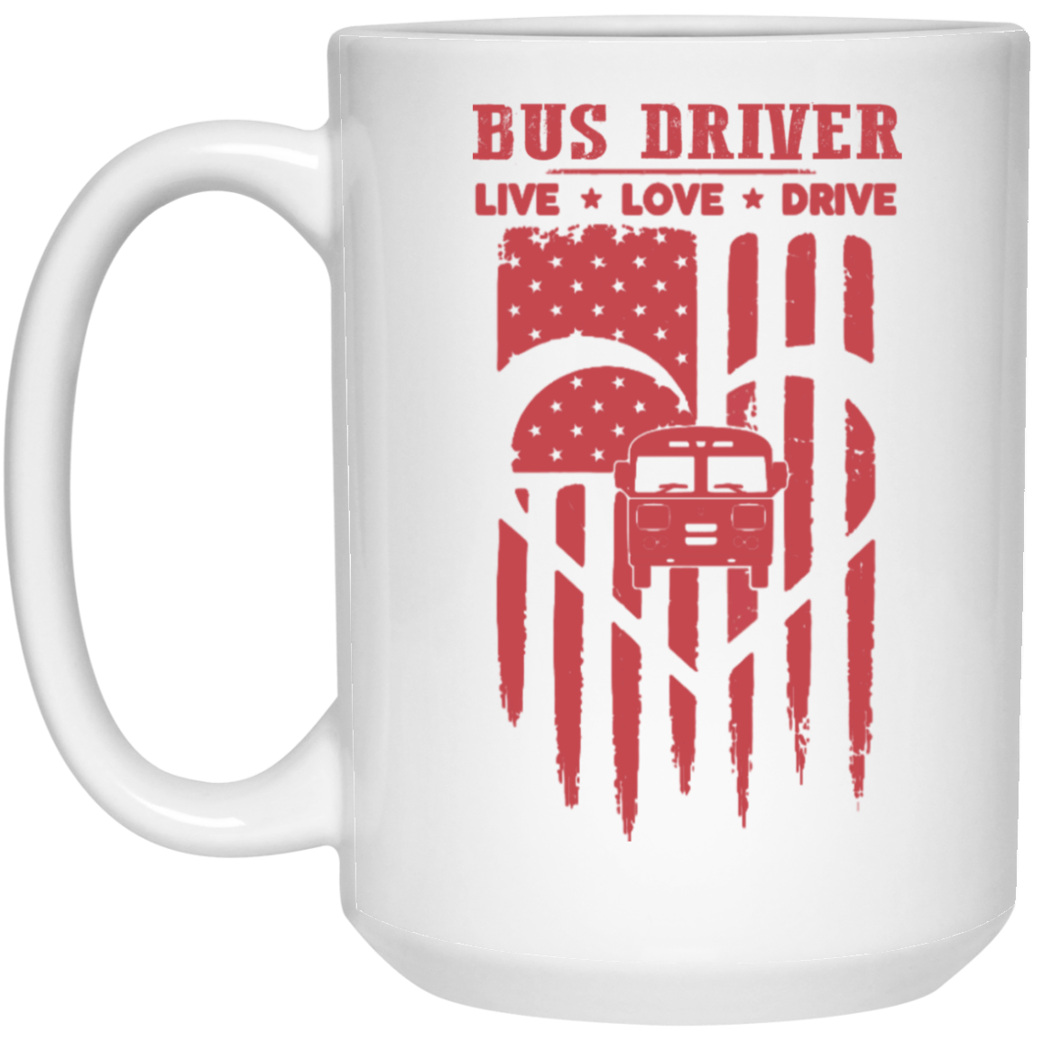 Bus Driver, Live Love Drive, Love By Heart, Love Bus Driver, Driver Gift White Mug
