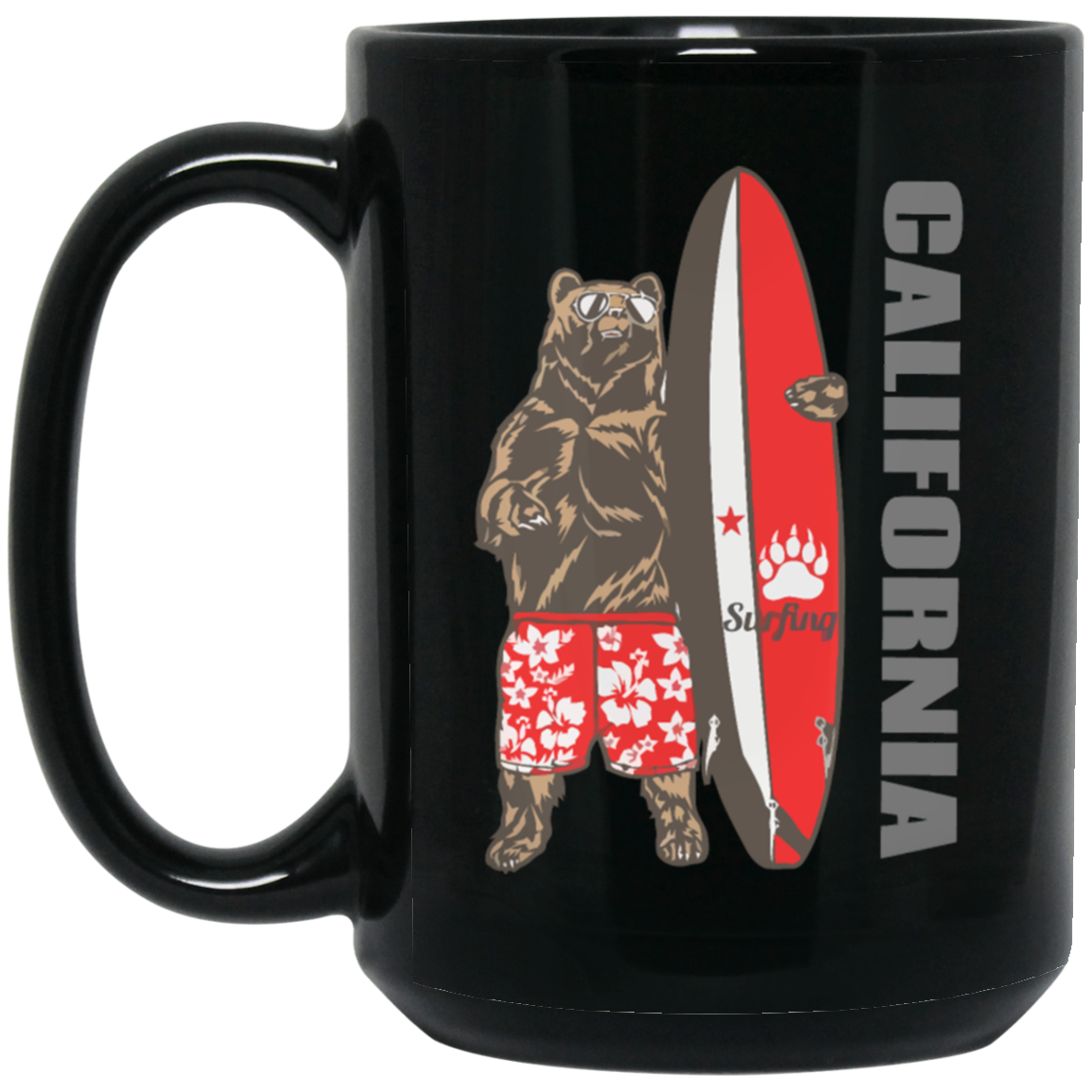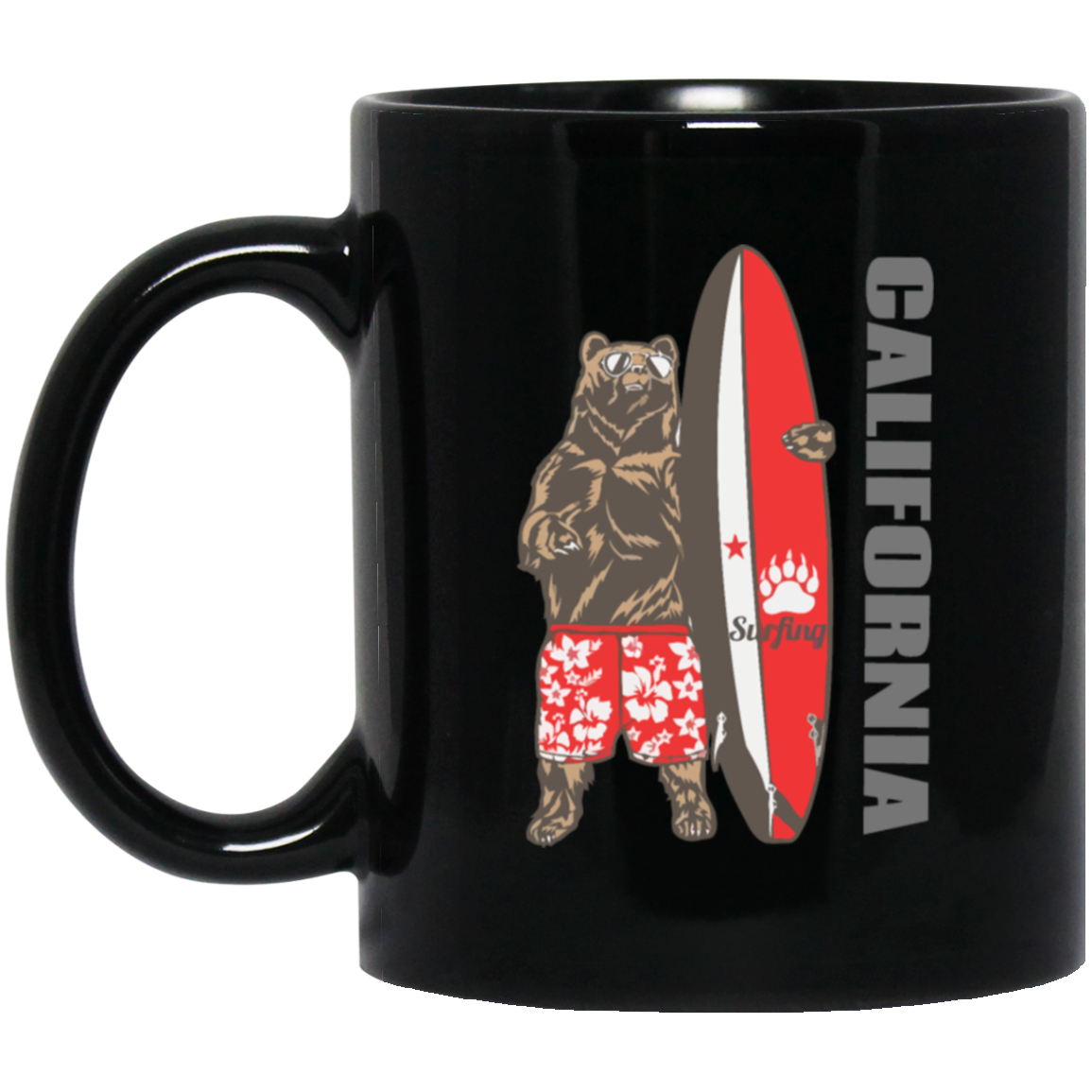 California Bear, Surfboard California, Love California, Surfboard Black Mug