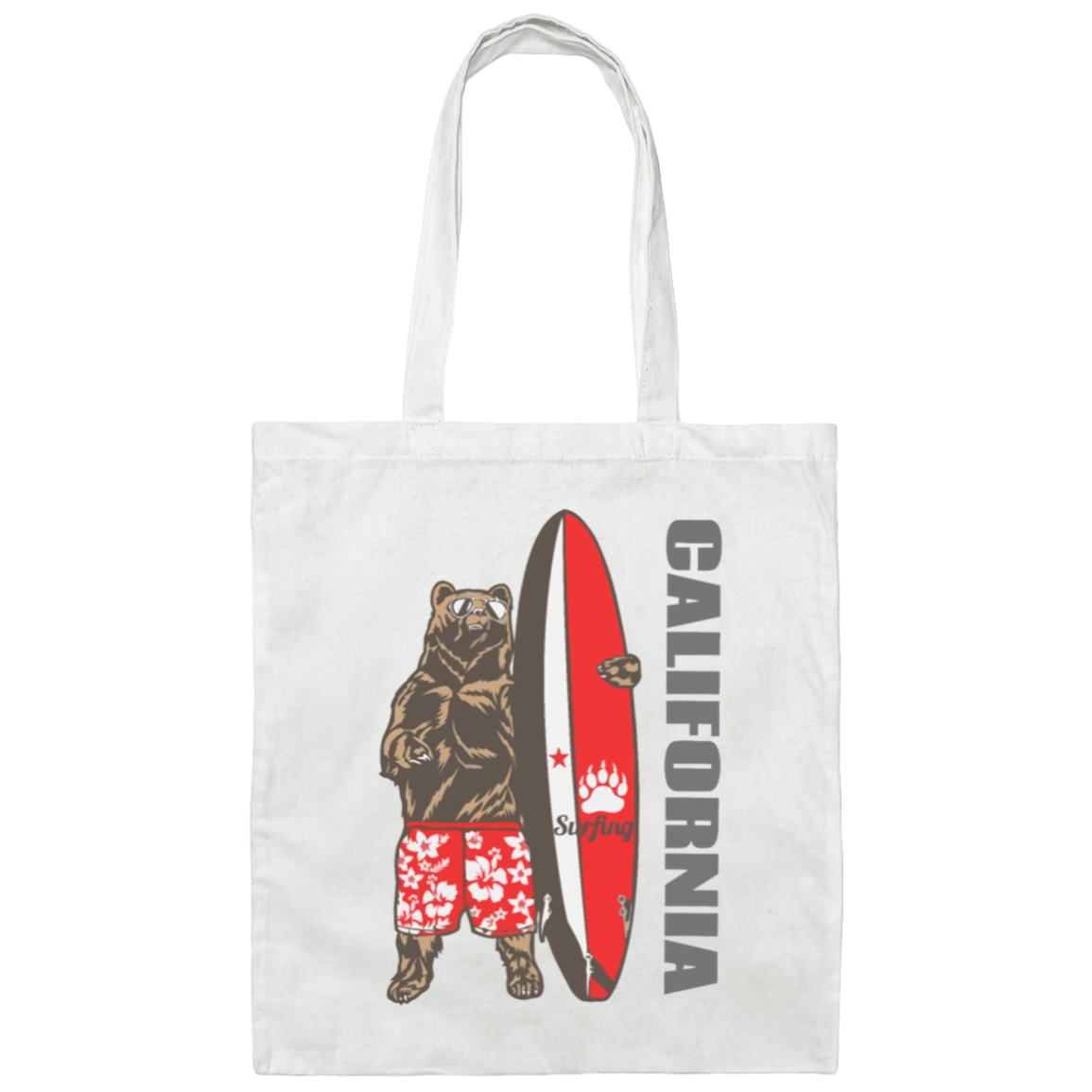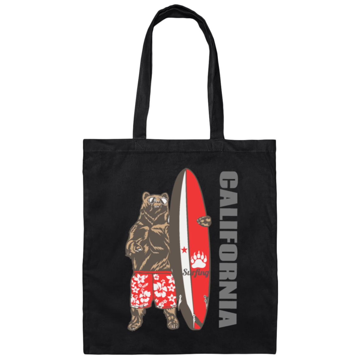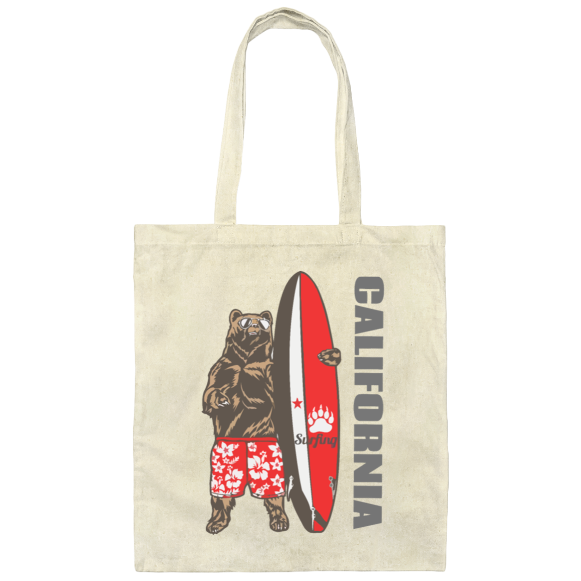 California Bear, Surfboard California, Love California, Surfboard Canvas Tote Bag