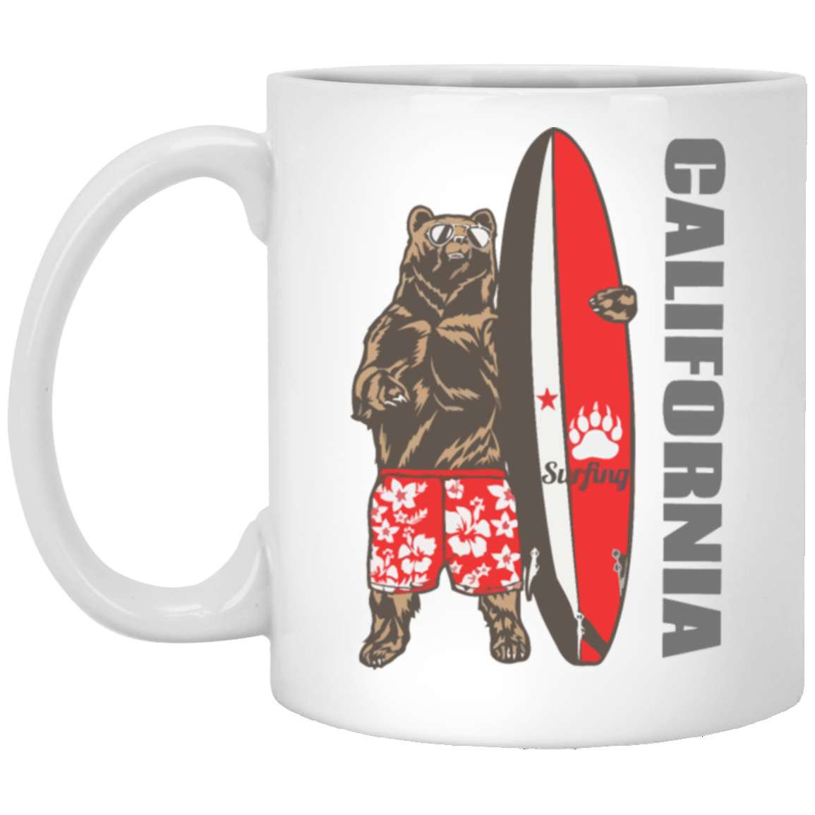 California Bear, Surfboard California, Love California, Surfboard White Mug