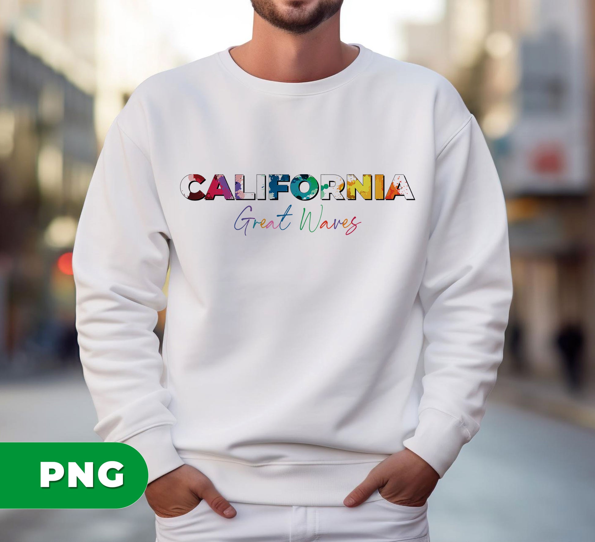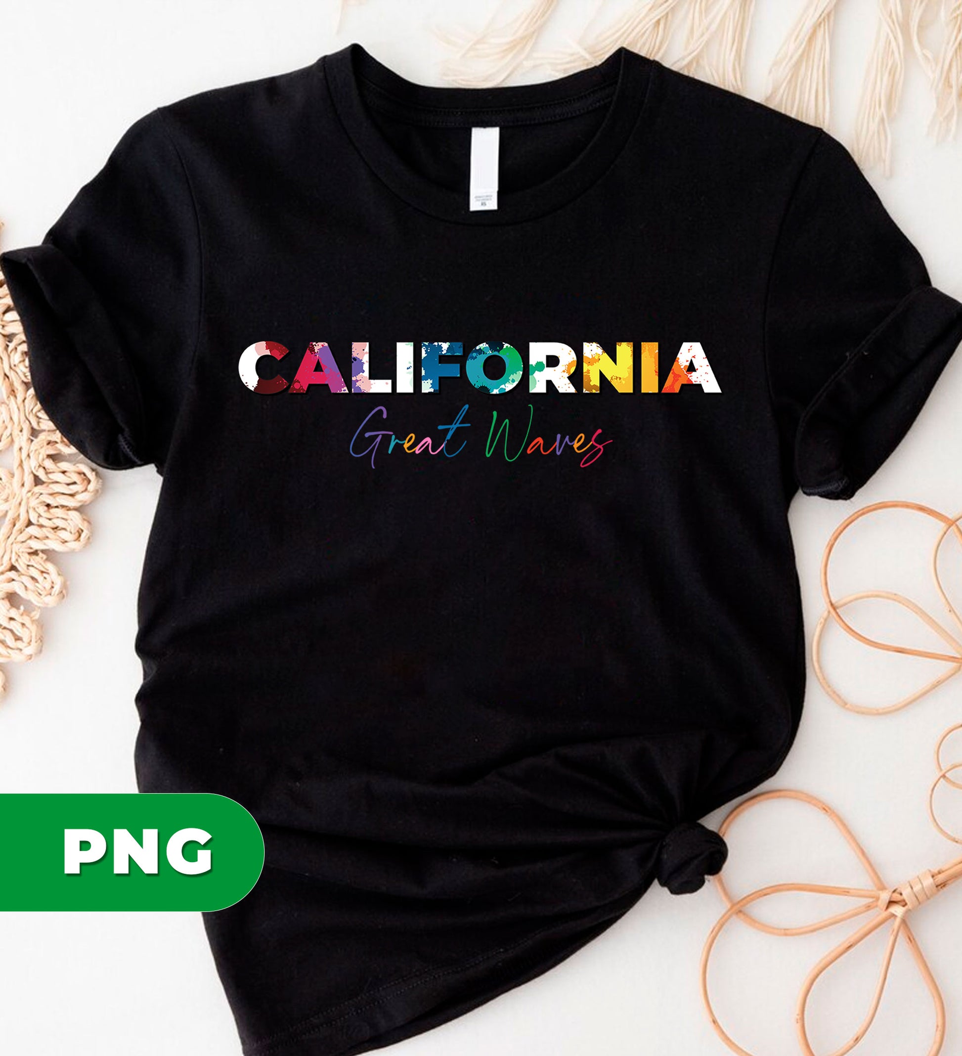 California Great Waves PNG with Colorful Paint Splash Letters, Trendy Summer Beach Sublimation Art, PNG For Shirts, PNG Sublimation