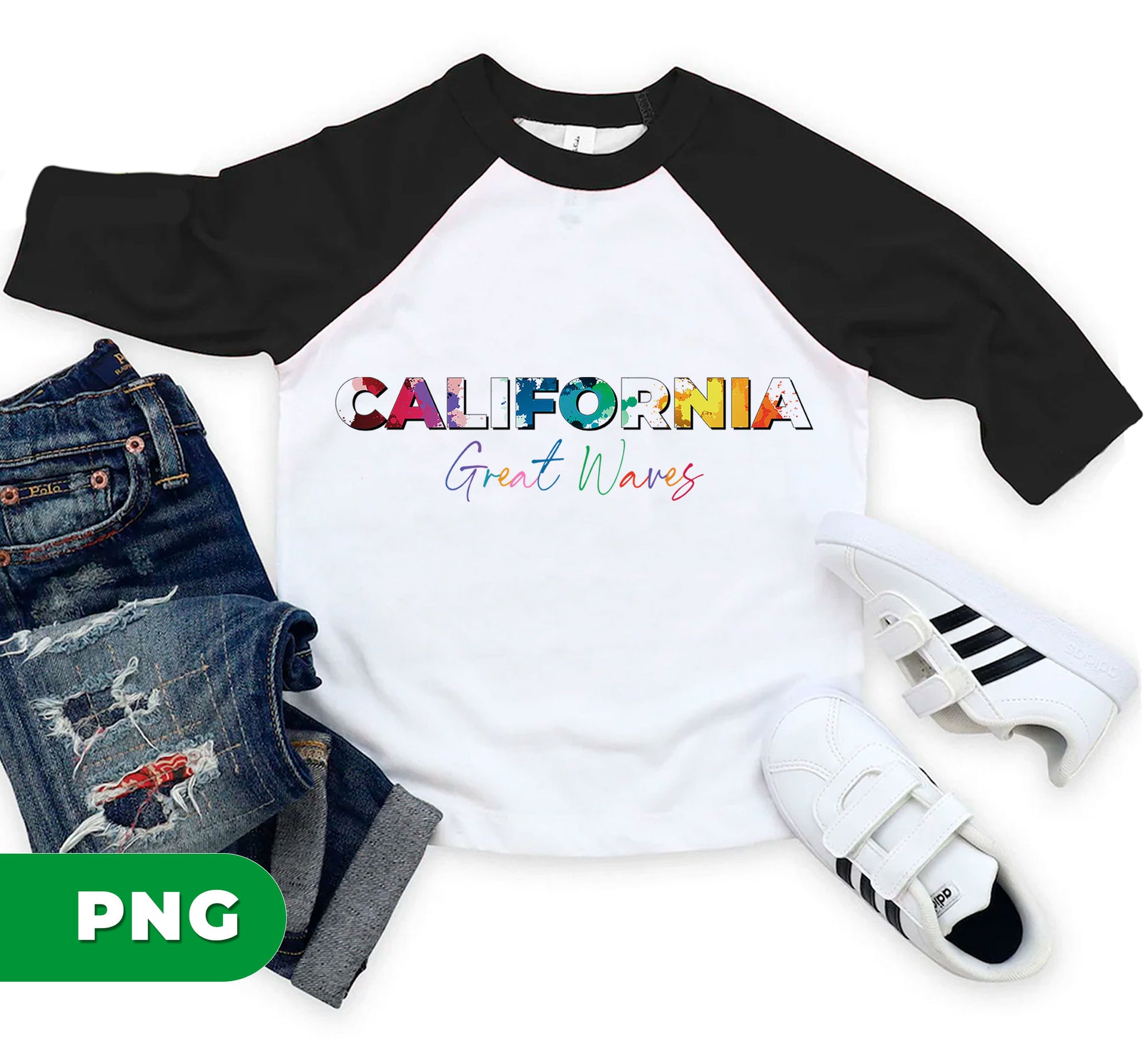 Celebrate summer vibes with this California Great Waves PNG design featuring vibrant, colorful paint splash letters. Perfect for trendy beach-themed shirts and sublimation projects, this playful artwork brings energy and style to your creations. Ideal for capturing the essence of sunny days and ocean waves in a fun, eye-catching way.