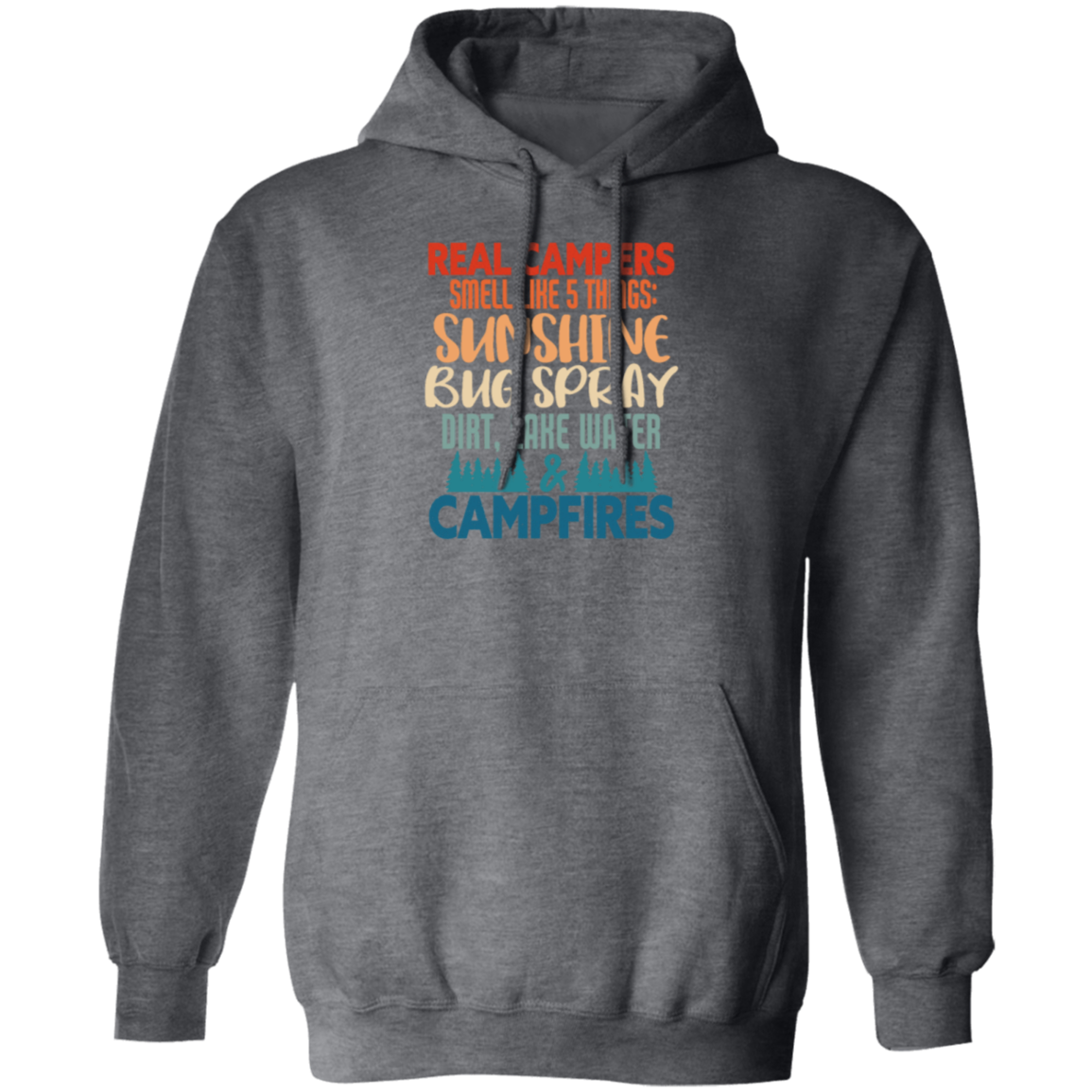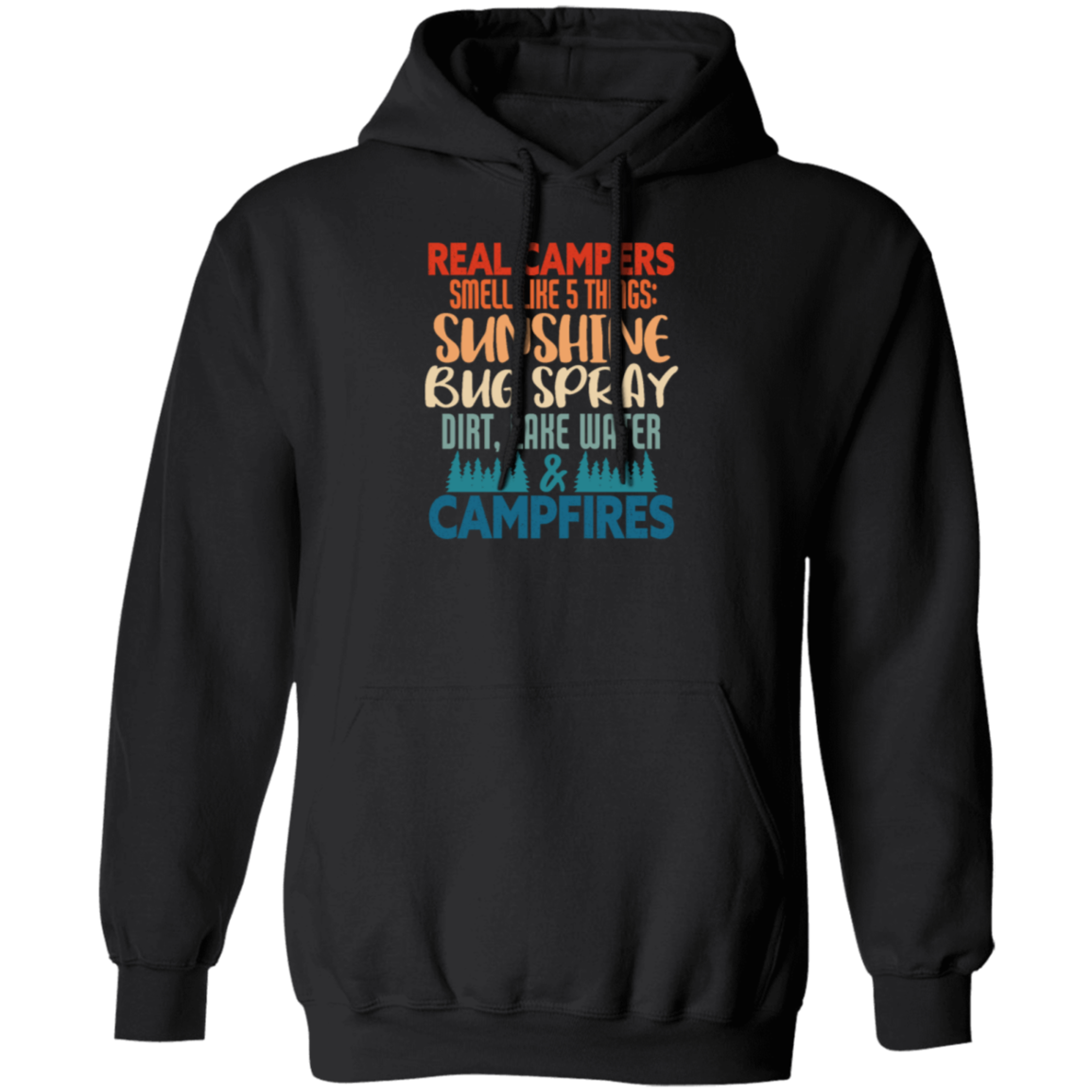 Campers Gift, Real Campers, Smell Like 5 Things, Retro Camping Quote Pullover Hoodie