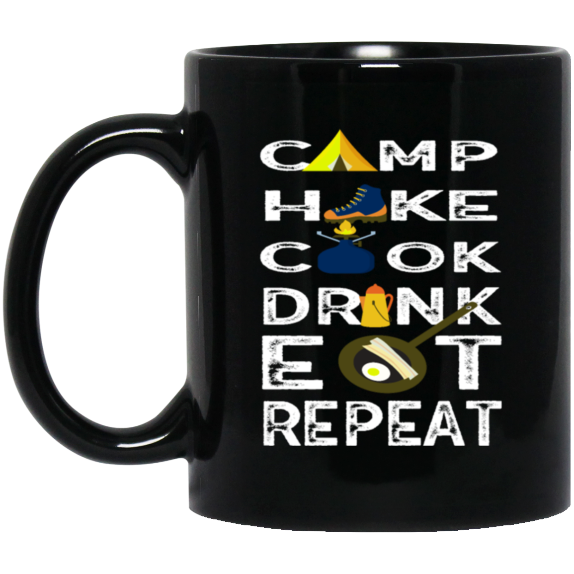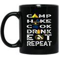 Camping Gift, Hiking And Cook, Drink And Eat, Repeat All, Go Camping Black Mug
