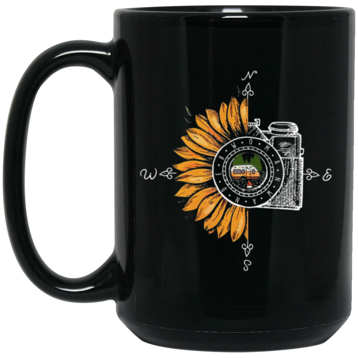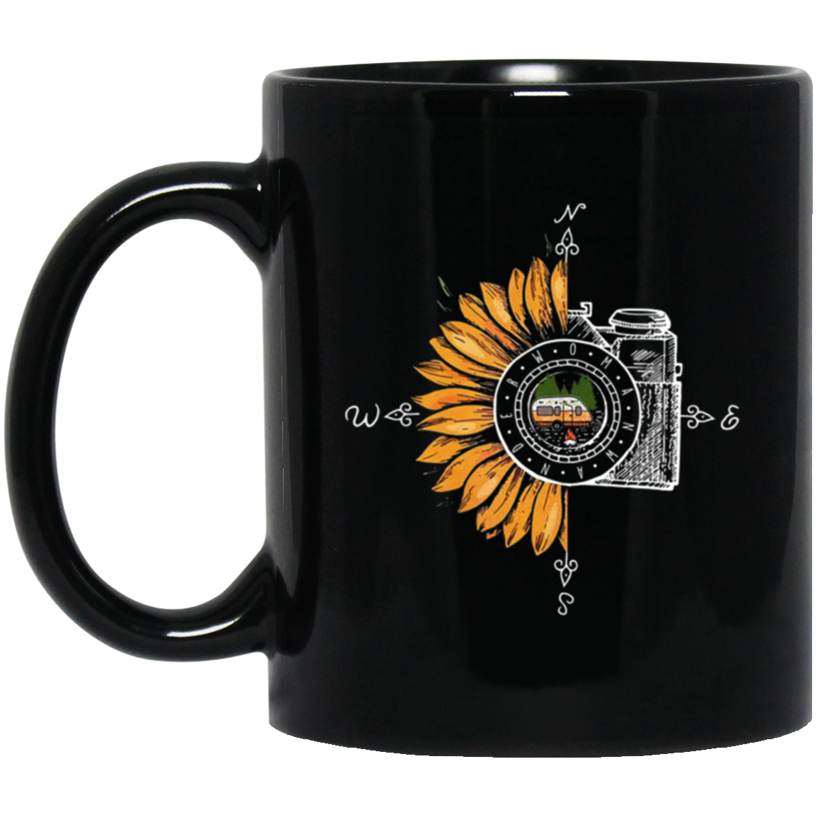 Camping Photography, Camera Sunflower, Love Sunflower, Love Camping Black Mug