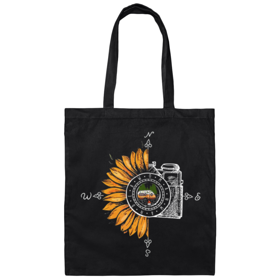 Camping Photography, Camera Sunflower, Love Sunflower, Love Camping Canvas Tote Bag