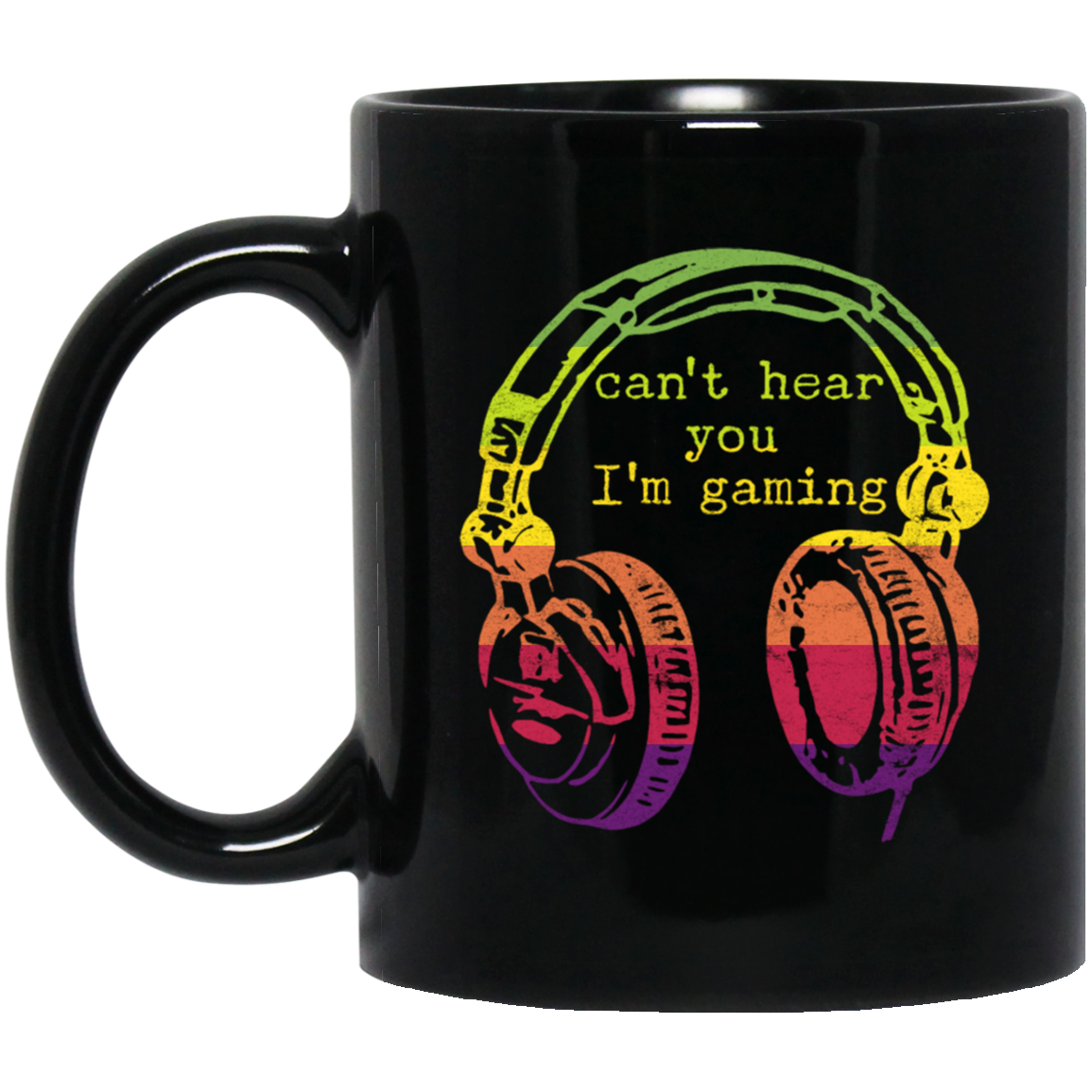 Can't Hear You I'm Gaming, Funny Gaming Gift, Retro Style Gift For Famer Black Mug