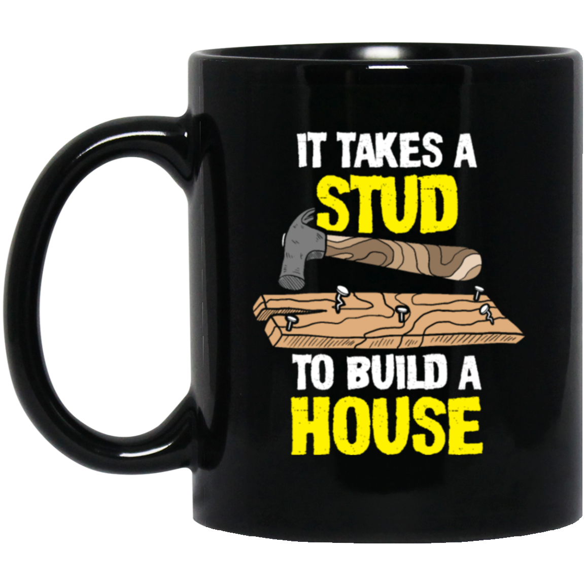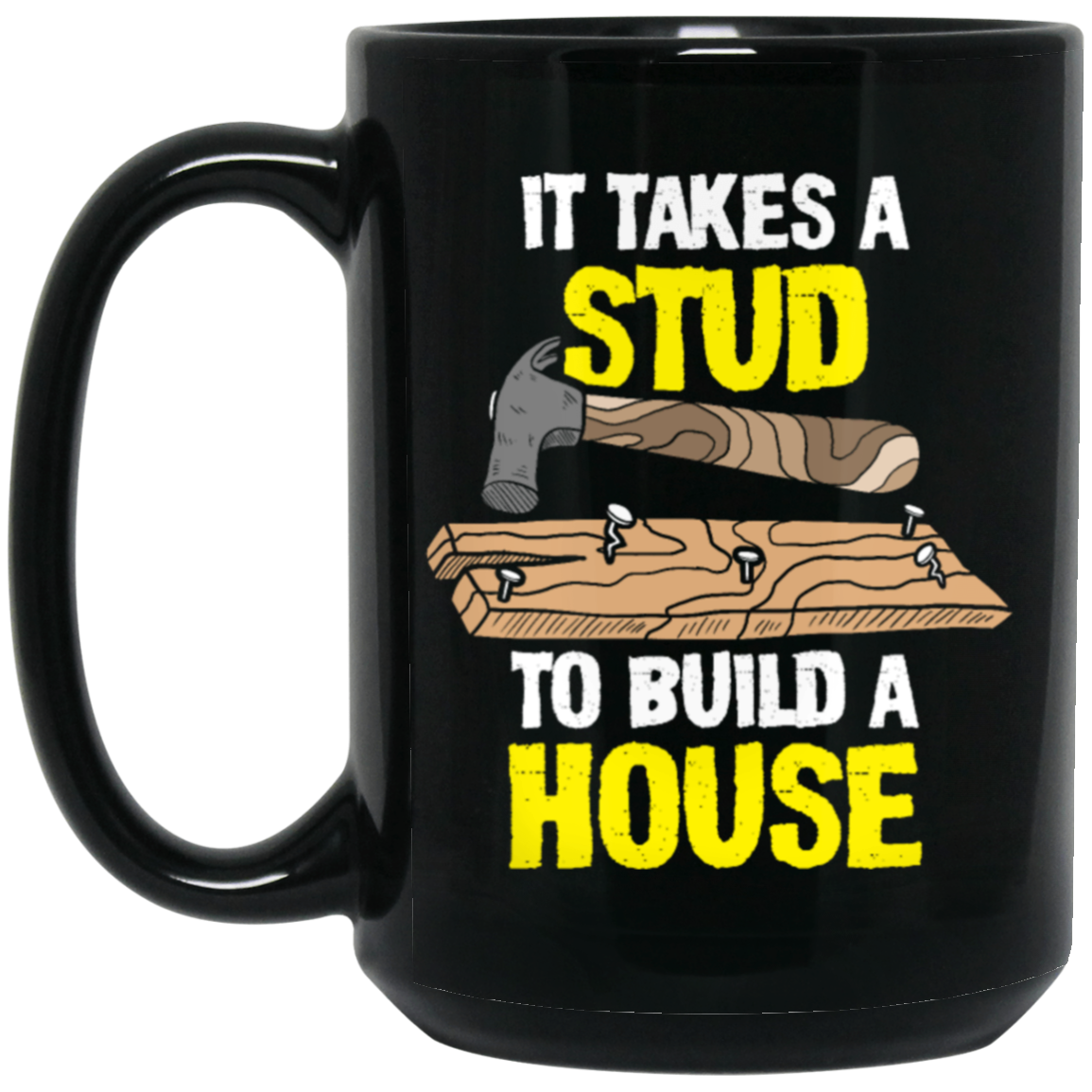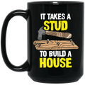 Carpenter Love Gift, Woodworker Takes A Stud To Build A House Black Mug
