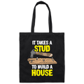 Carpenter Love Gift, Woodworker Takes A Stud To Build A House Canvas Tote Bag