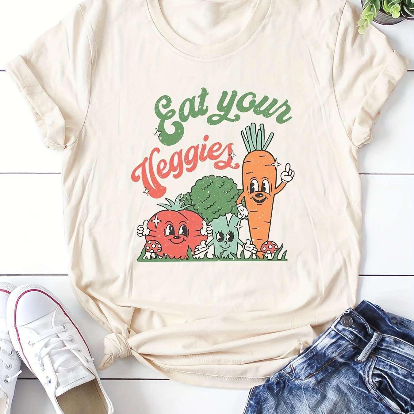 Introducing the Cartoon Carrot Delight: Casual Short Sleeve Top for Spring/Summer - a must-have for any woman's wardrobe. Made with lightweight material, this top is perfect for warmer weather. With a fun and playful design, it adds a touch of whimsy to any outfit. Stay stylish and comfortable this season with our Cartoon Carrot Delight top.