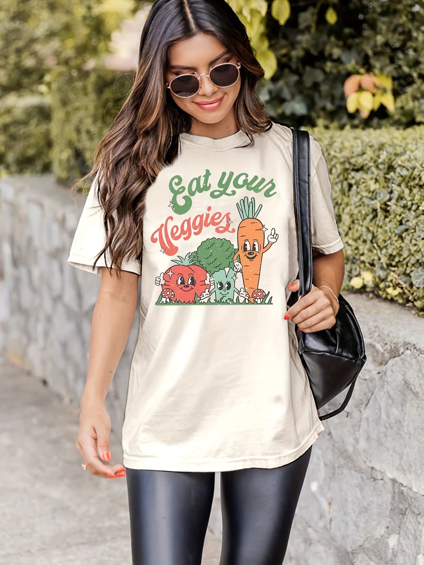Cartoon Carrot Delight: Casual Short Sleeve Top for Spring/Summer - Women's Clothing