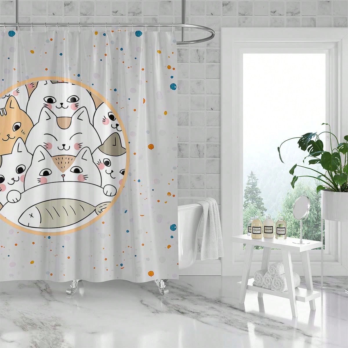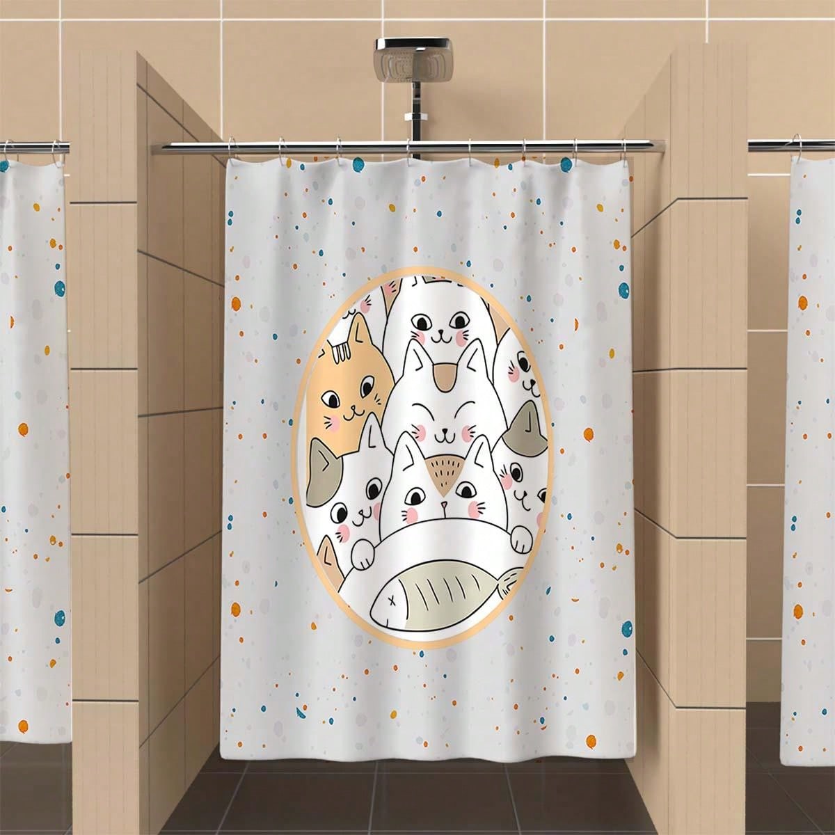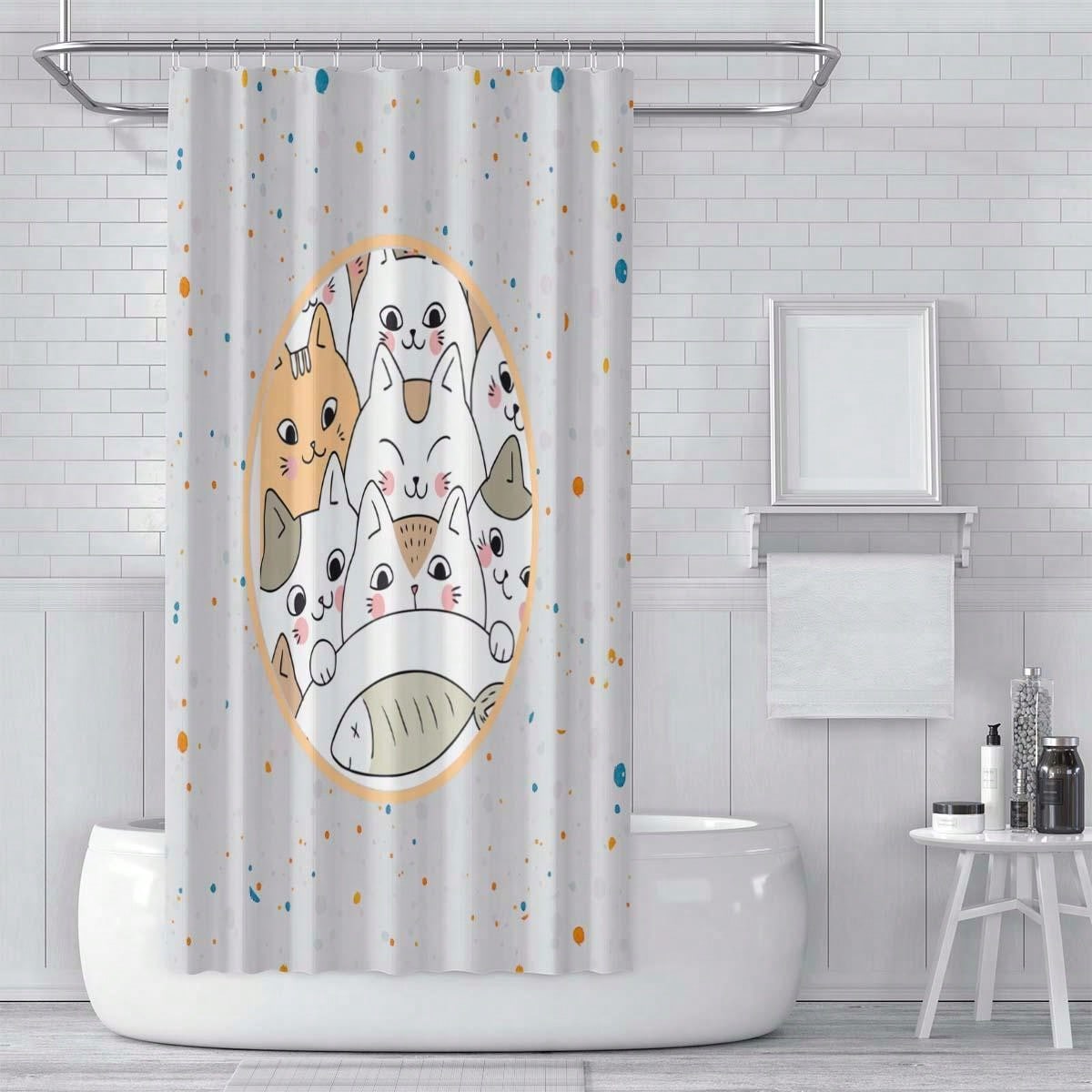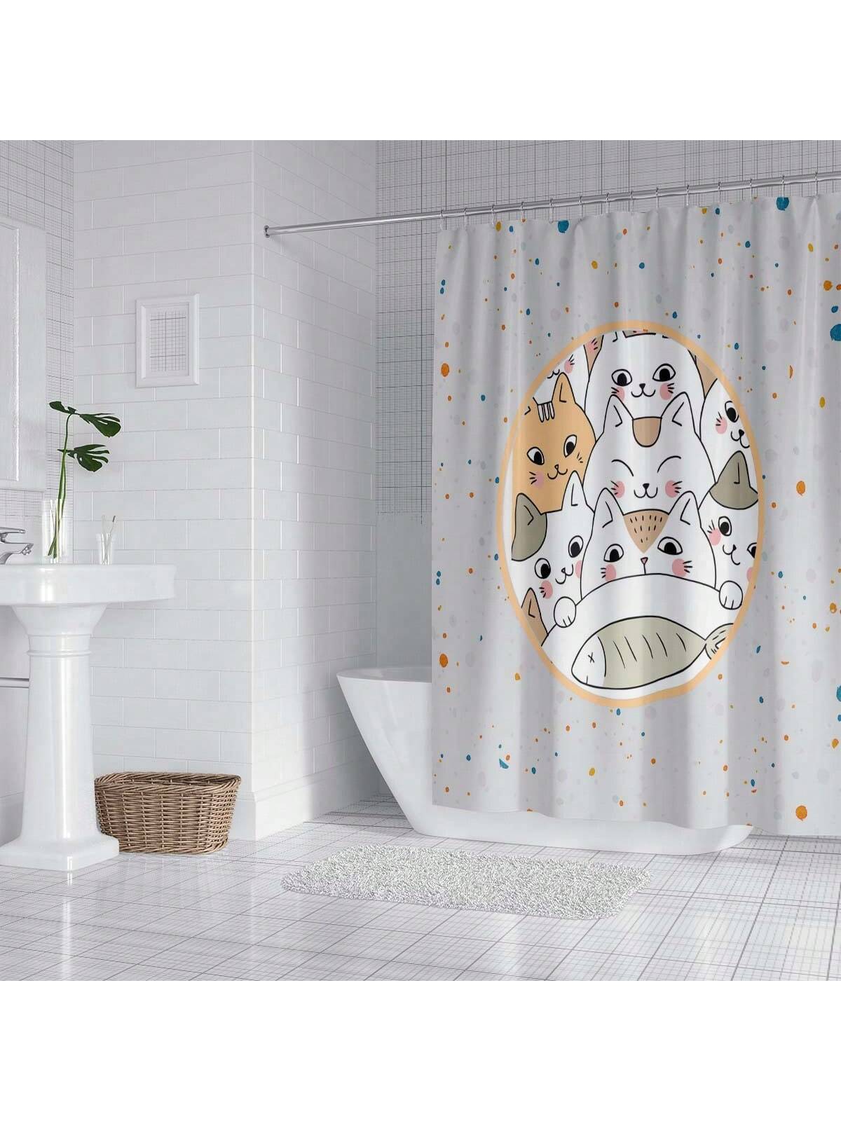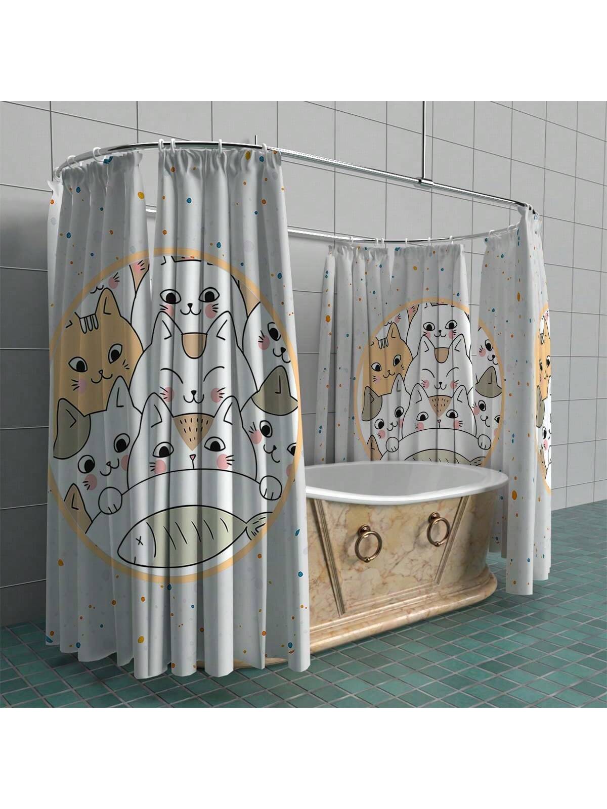 Cartoon Cat Graffiti Style Waterproof Polyester Bath Curtain - Enhance Your Bathroom with Grey Tone Design