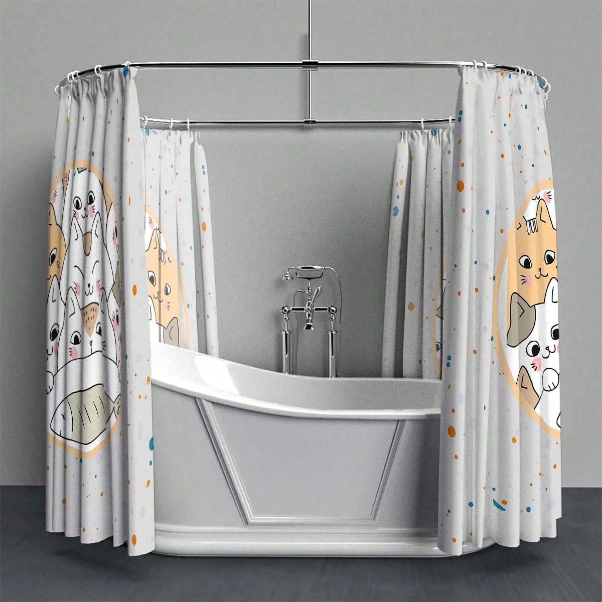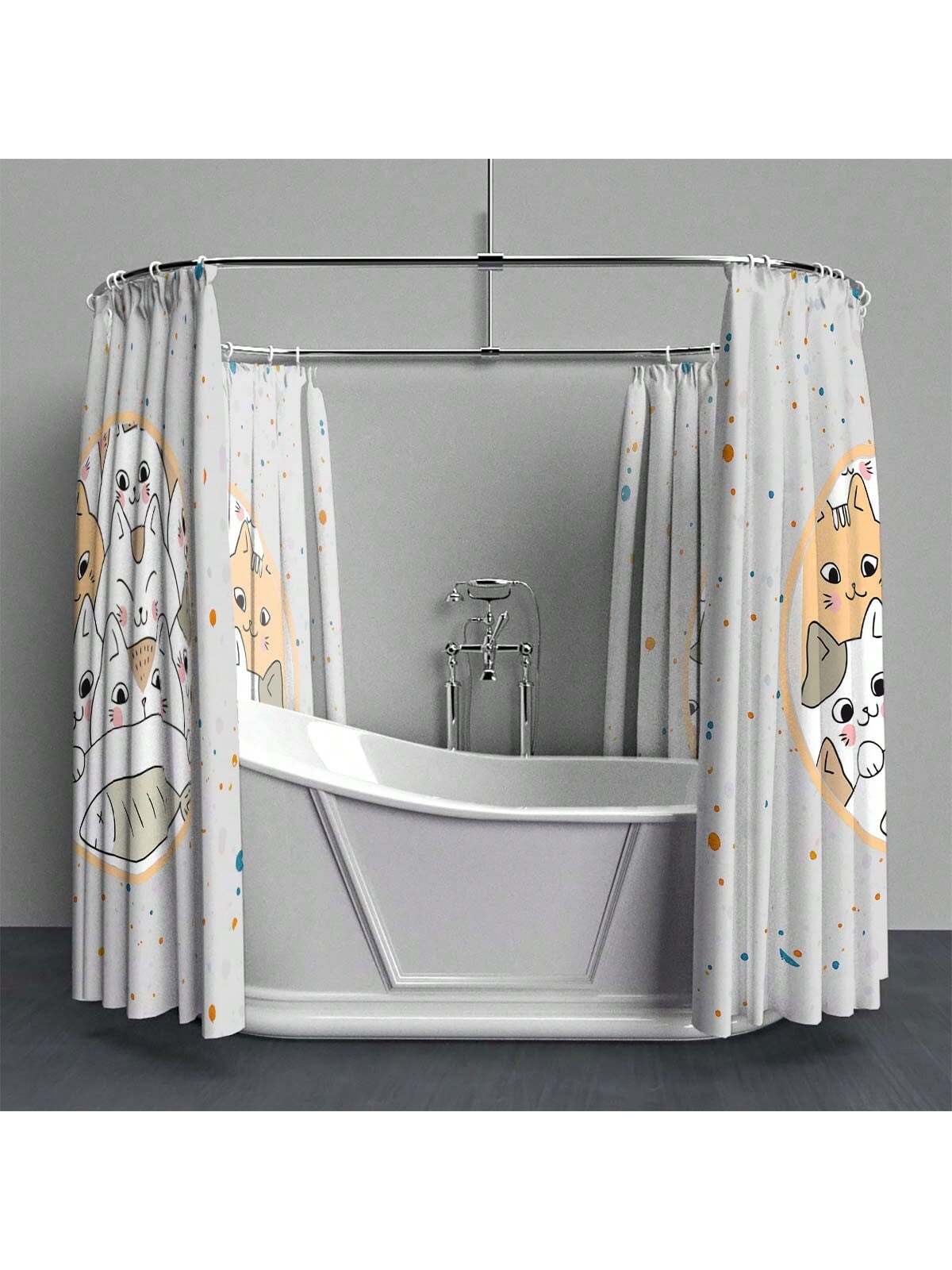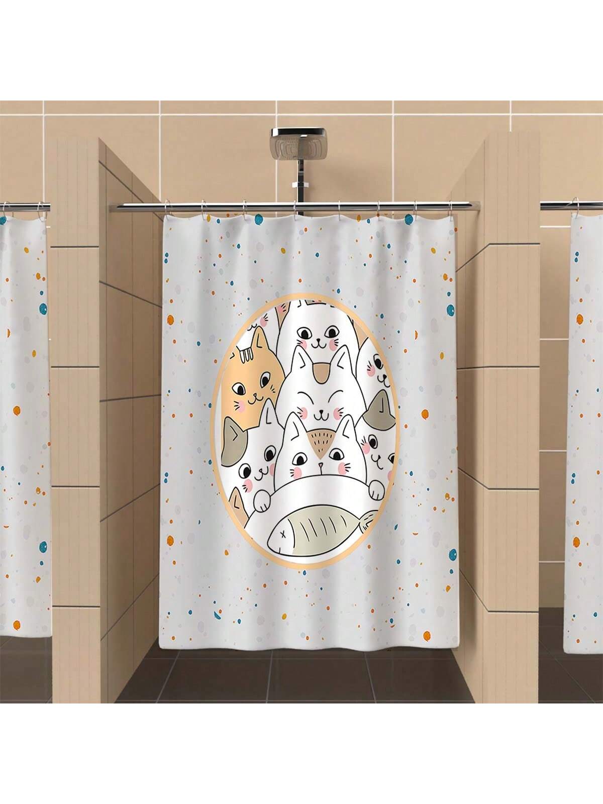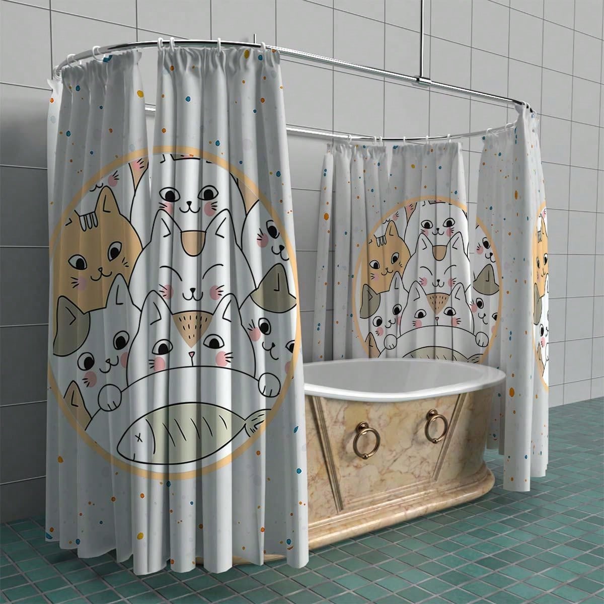Cartoon Cat Graffiti Style Waterproof Polyester Bath Curtain - Enhance Your Bathroom with Grey Tone Design