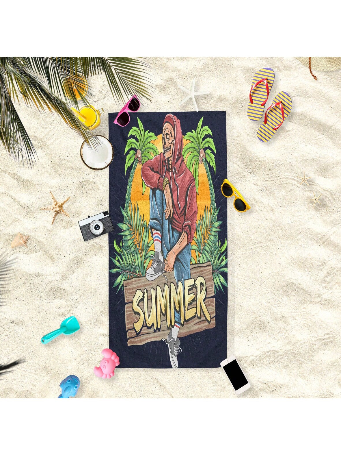 Cartoon Skull Pattern Beach Towel: Sand Resistant, Quick Drying, Soft and Absorbent - Perfect for Sports, Yoga, Hiking, and Travel