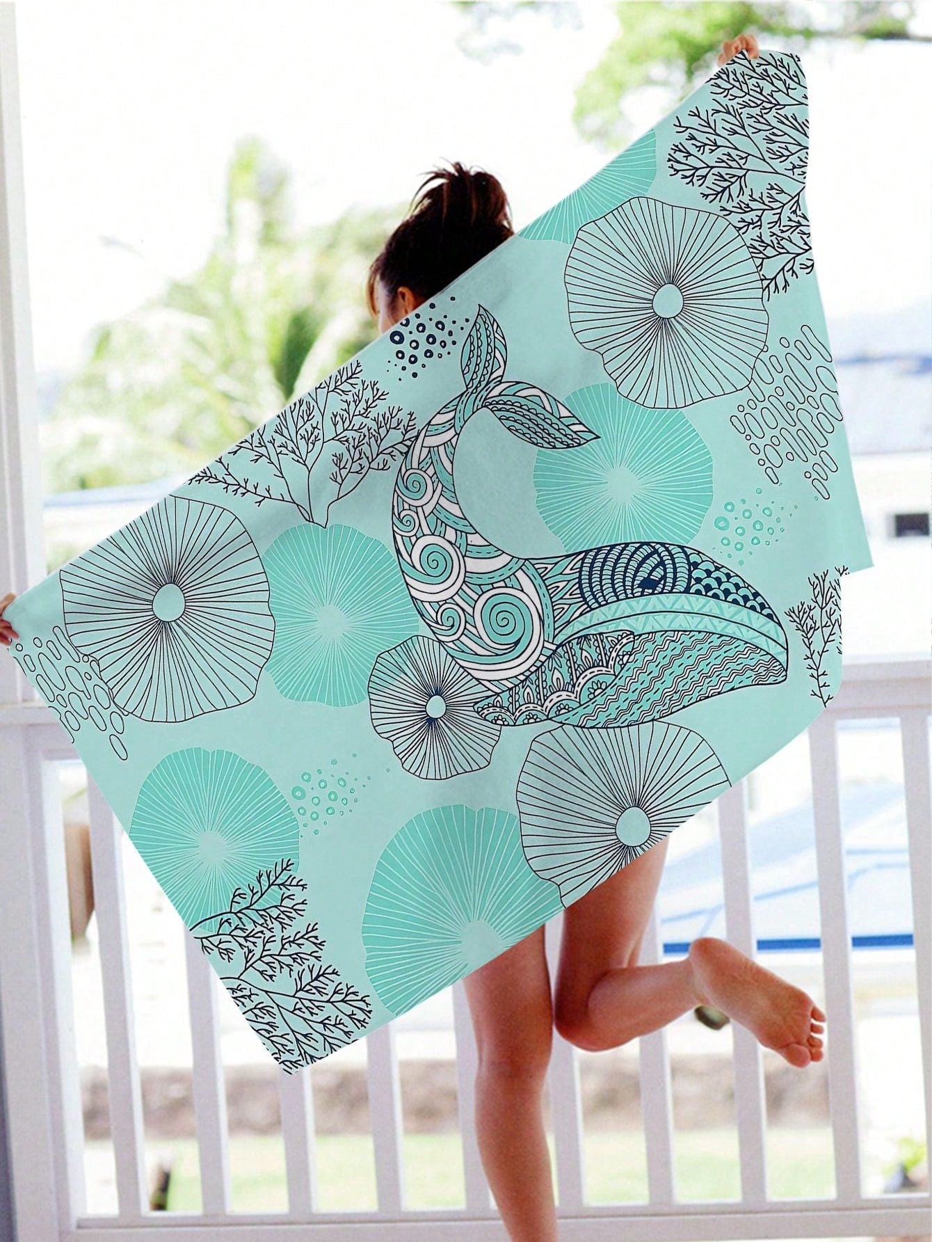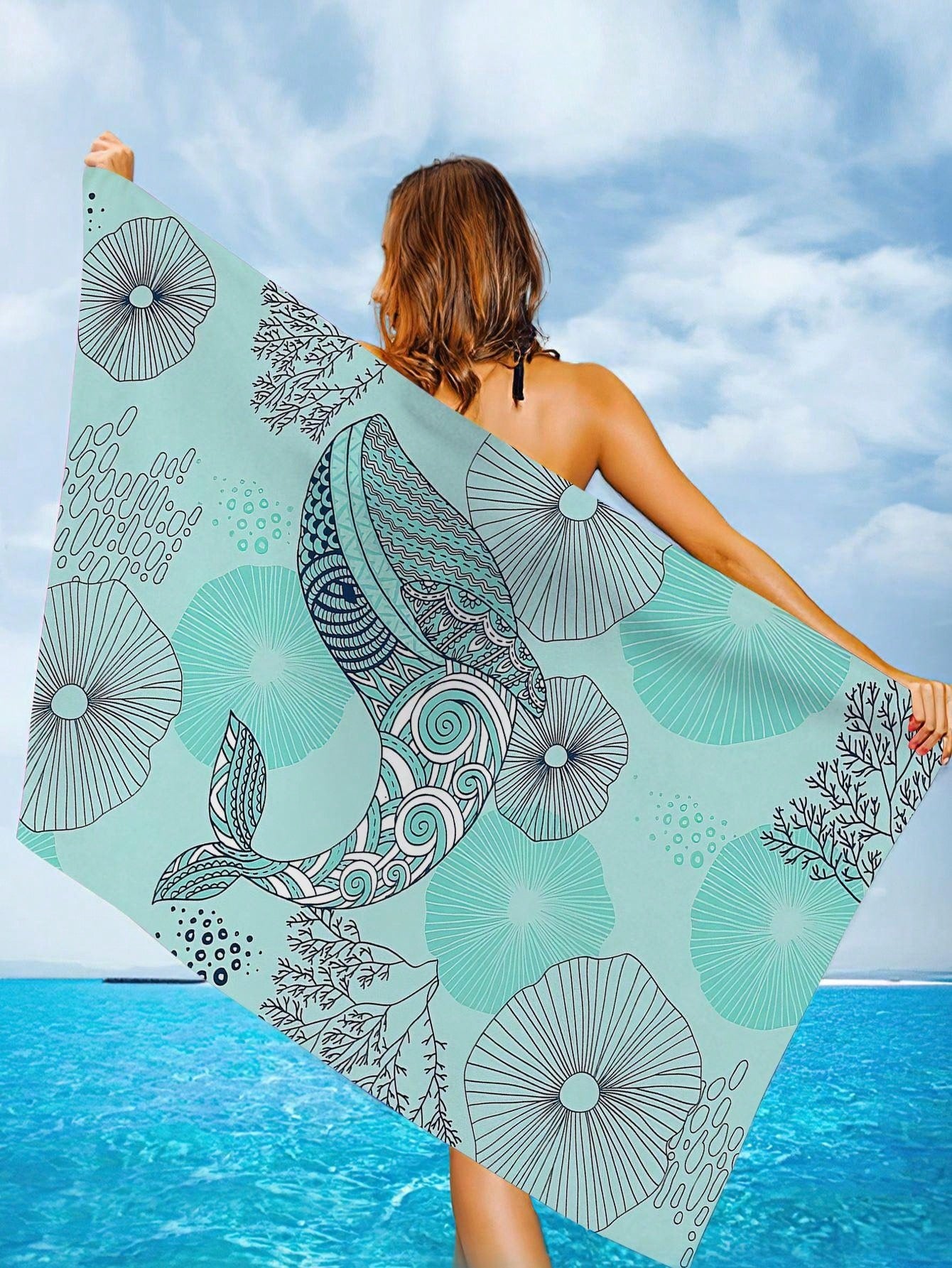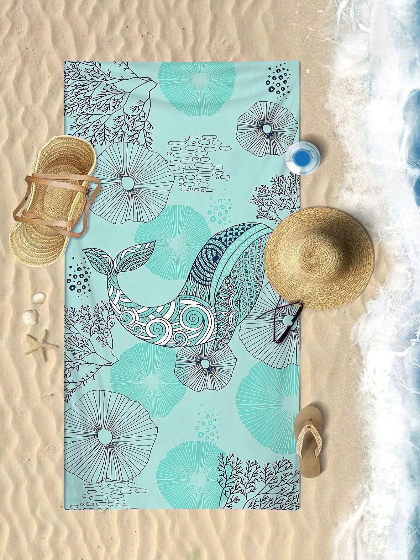 Cartoon Whale Pattern Beach Towel: Your Essential Companion for Swimming, Camping, Vacation, and More!