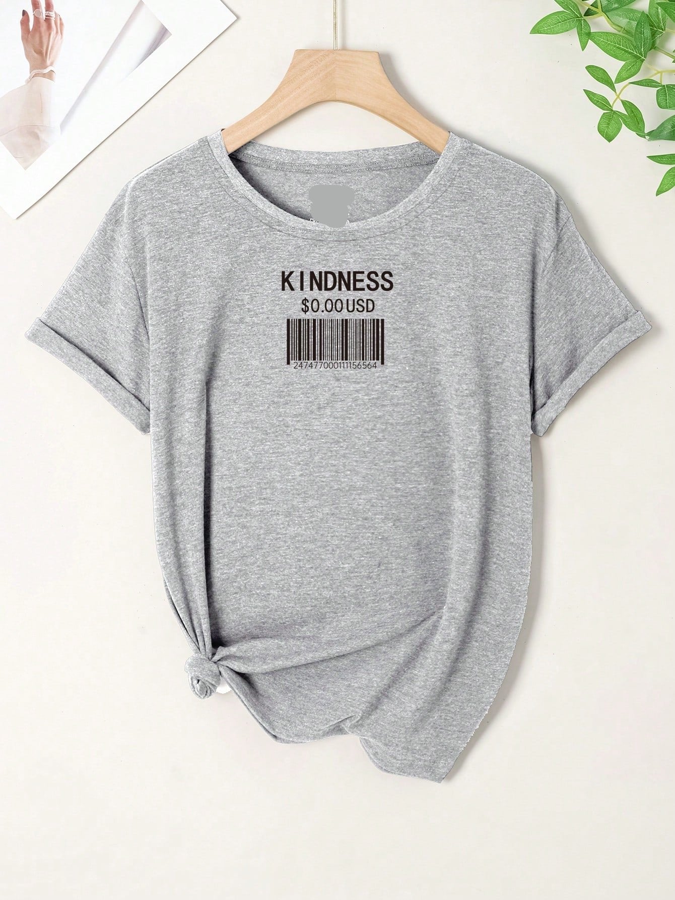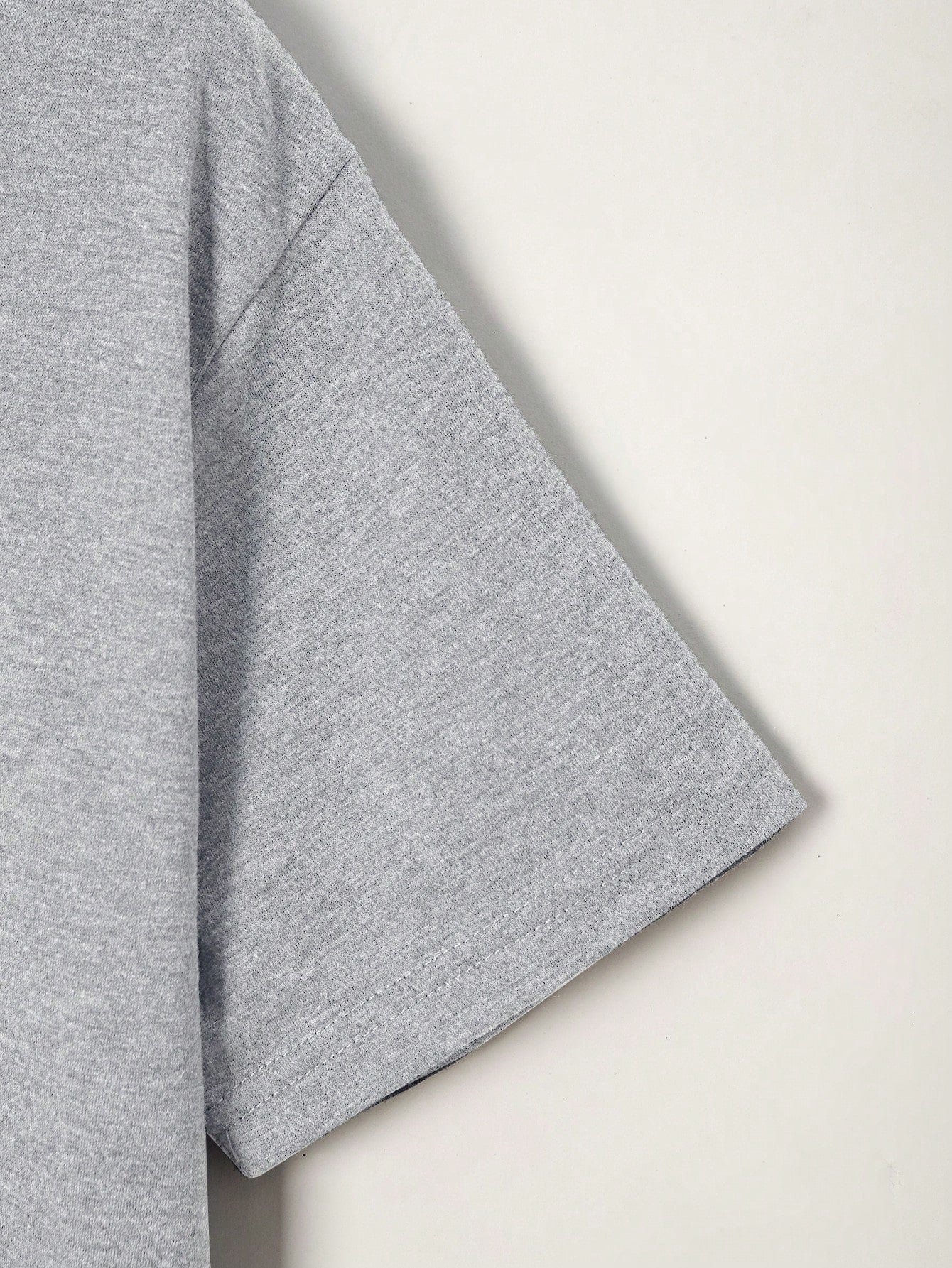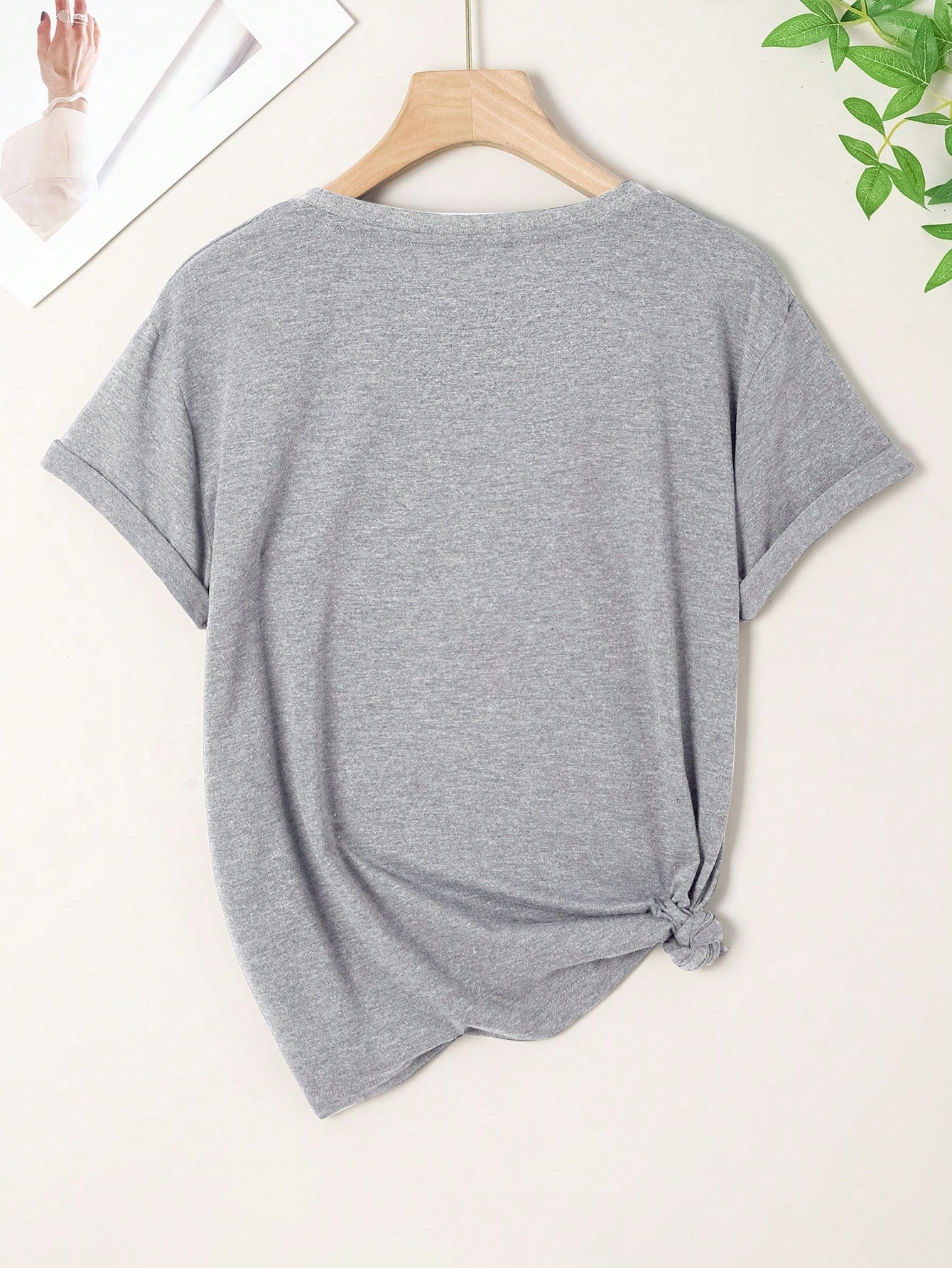 Casual Letter Print Drop Shoulder T-Shirt for Women