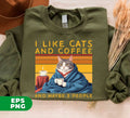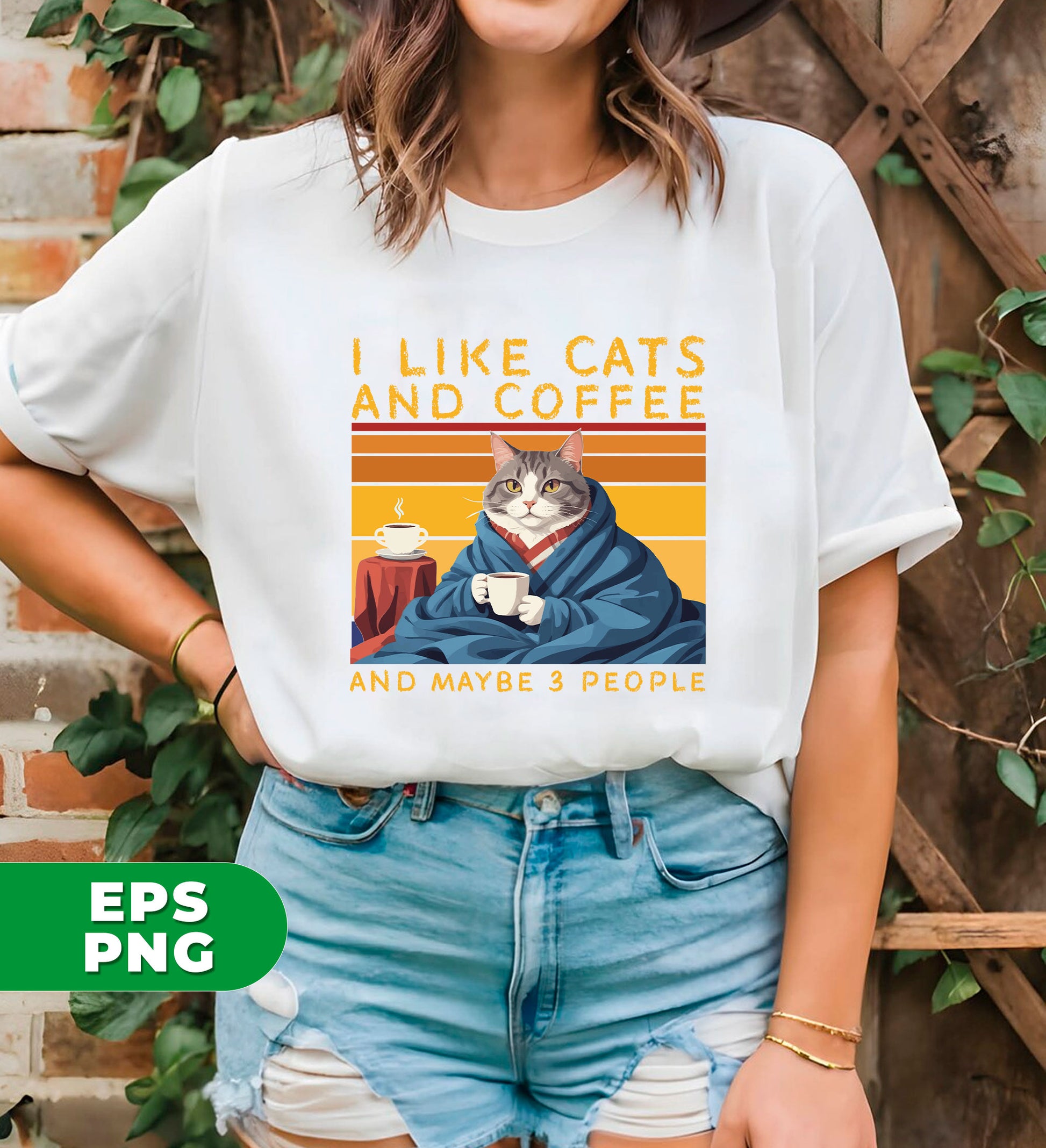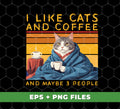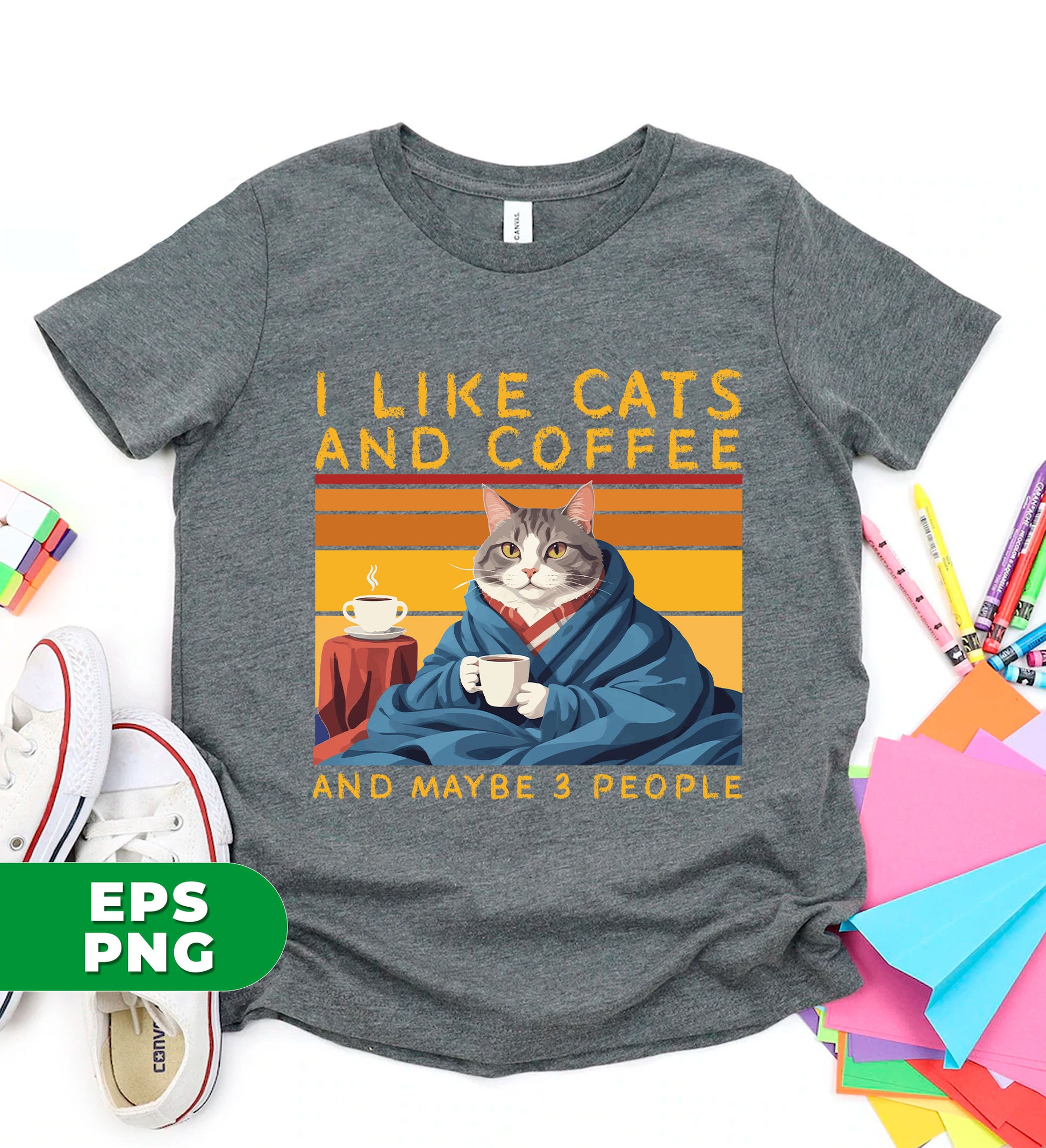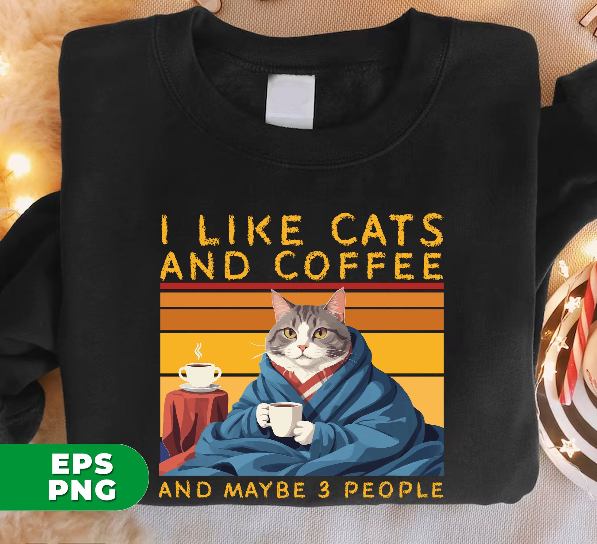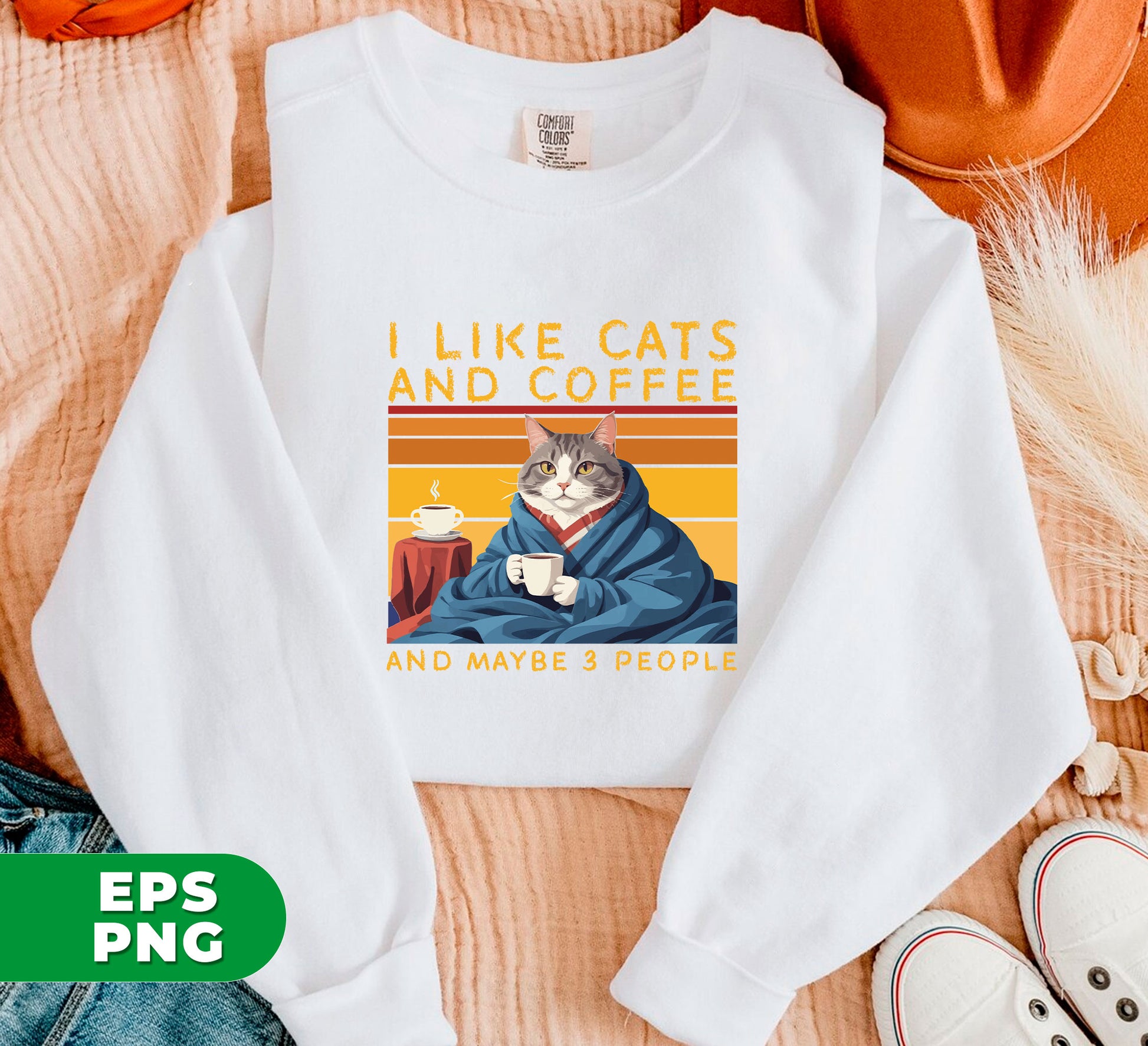 Cat And Coffee, I Like Cats And Coffee And Maybe 3 People, Funny Cats Gift, Retro Cat, Digital Files, Png Sublimation