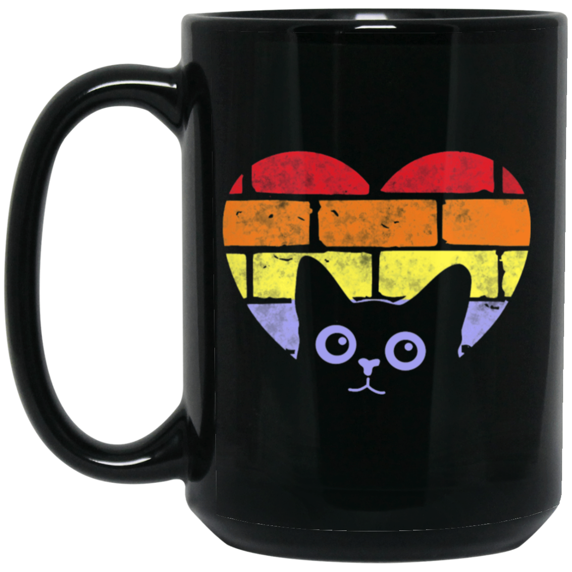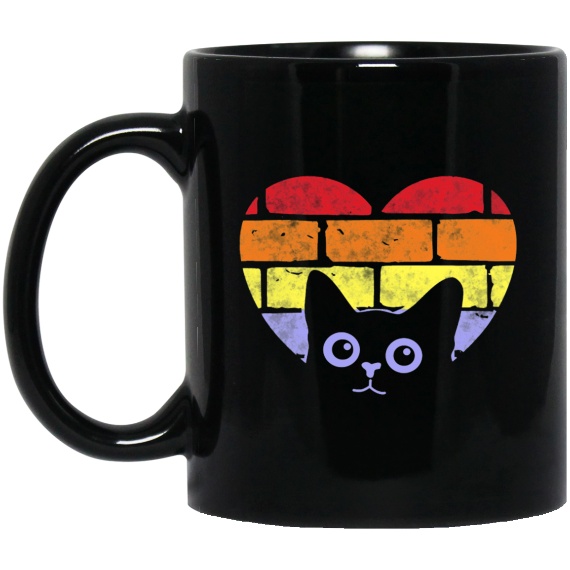 Cat In My Heart, Cat And Wall Retro Style, Cat Lover Gift, Retro Cat Black Mug