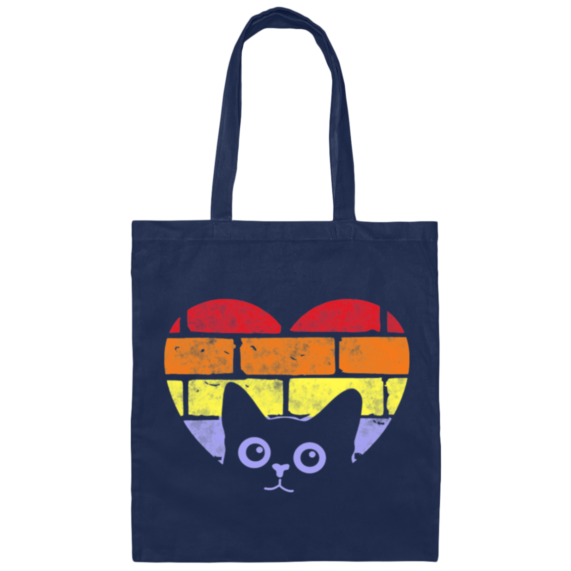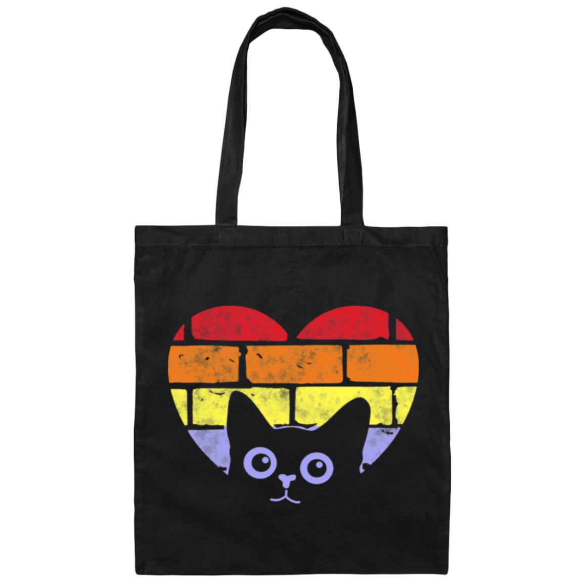 Cat In My Heart, Cat And Wall Retro Style, Cat Lover Gift, Retro Cat Canvas Tote Bag