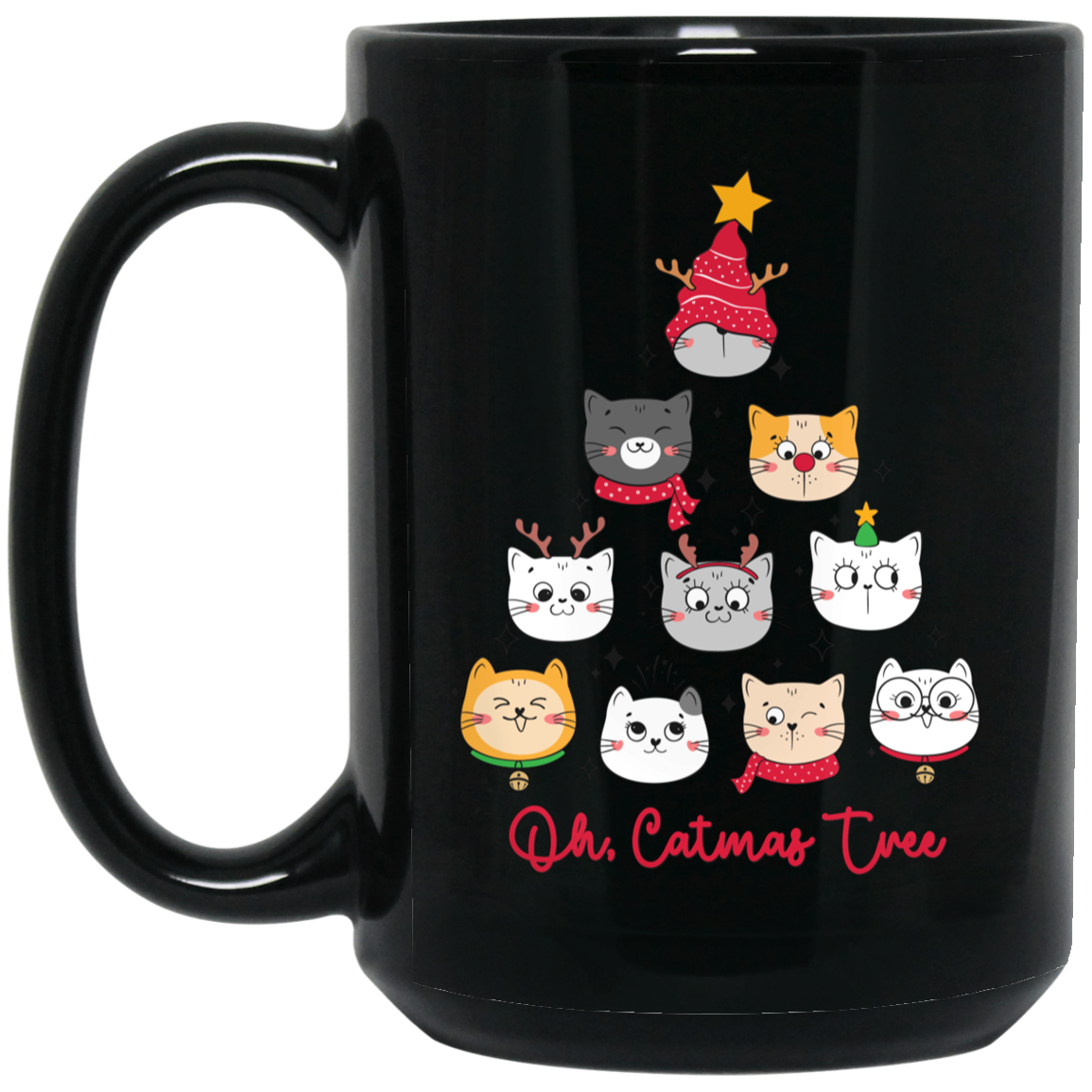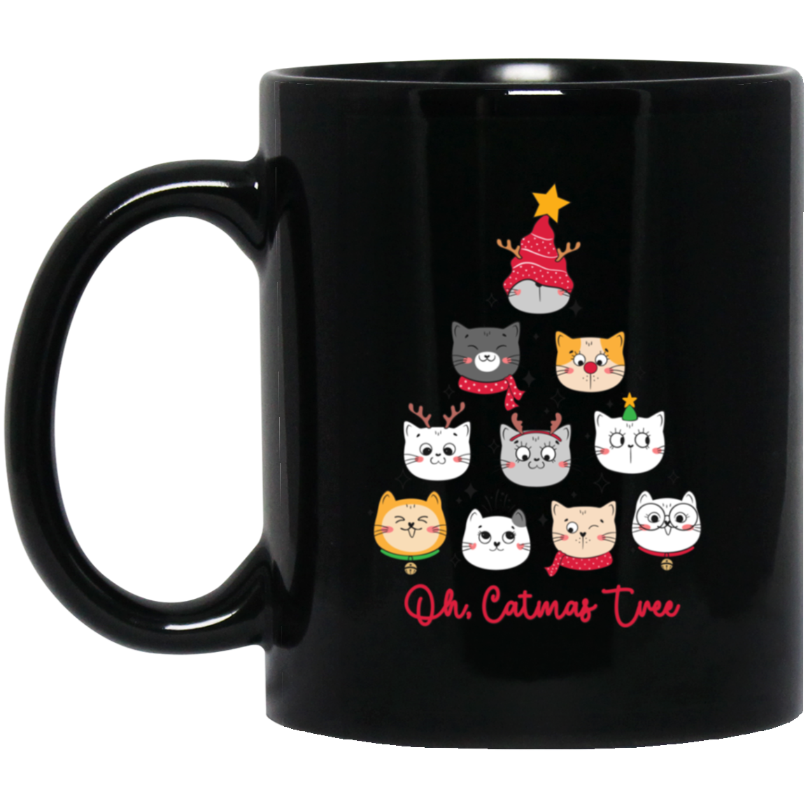 Catmas Tree, Merry Catmas, Cute Cat, Merry Christmas, Trendy Christmas Black Mug