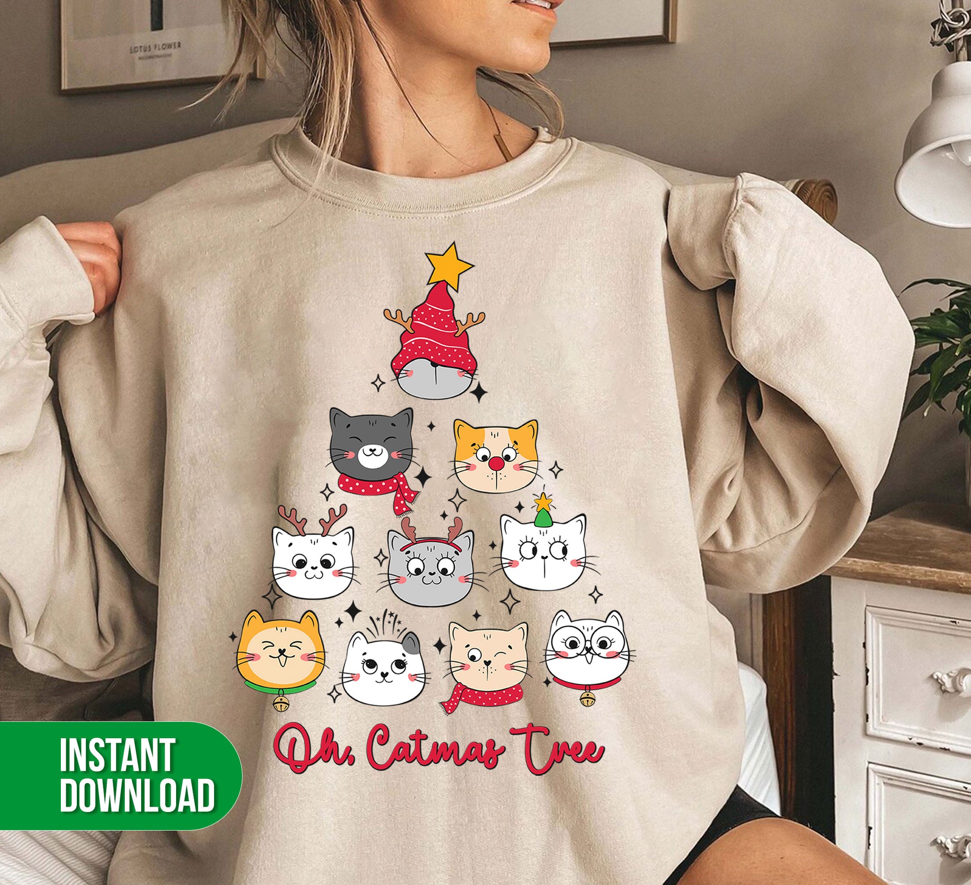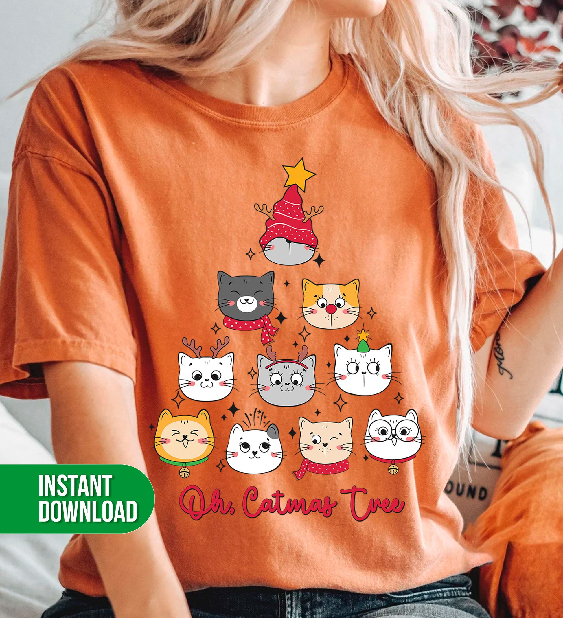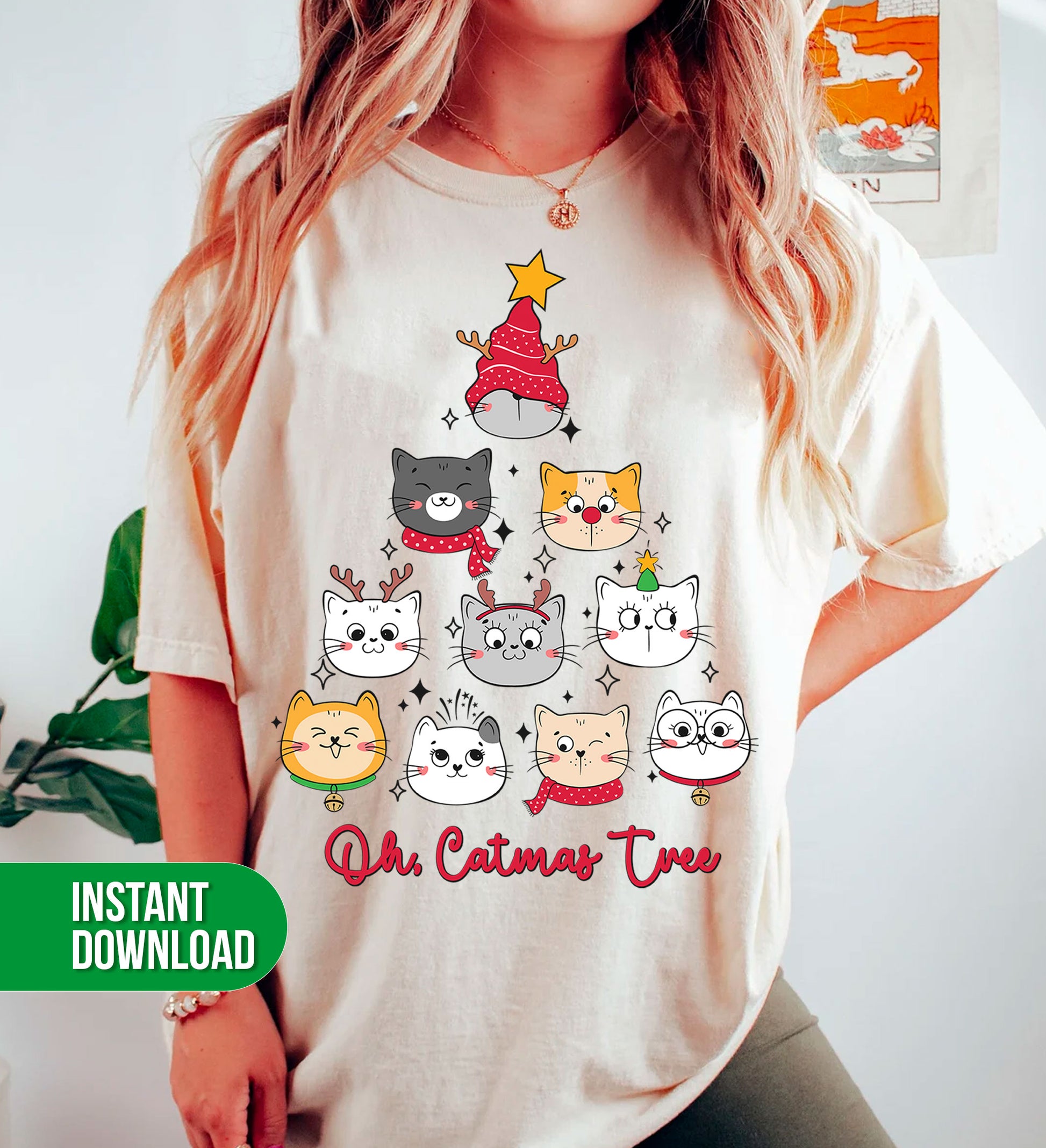 Catmas Tree, Merry Catmas, Cute Cat, Merry Christmas, Trendy Christmas, Digital Files, Png Sublimation