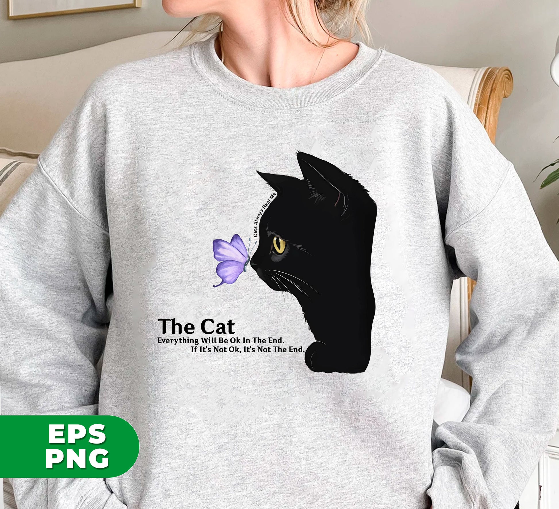 Cats Always Heal Me, The Cat Everything Will Be Ok In The End, If It's Not Ok It's Not The End, Digital Files, Png Sublimation
