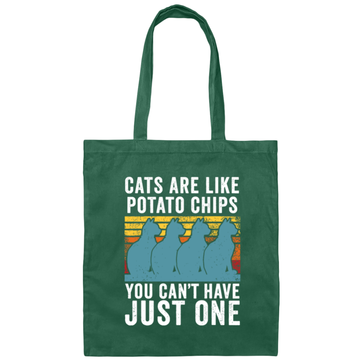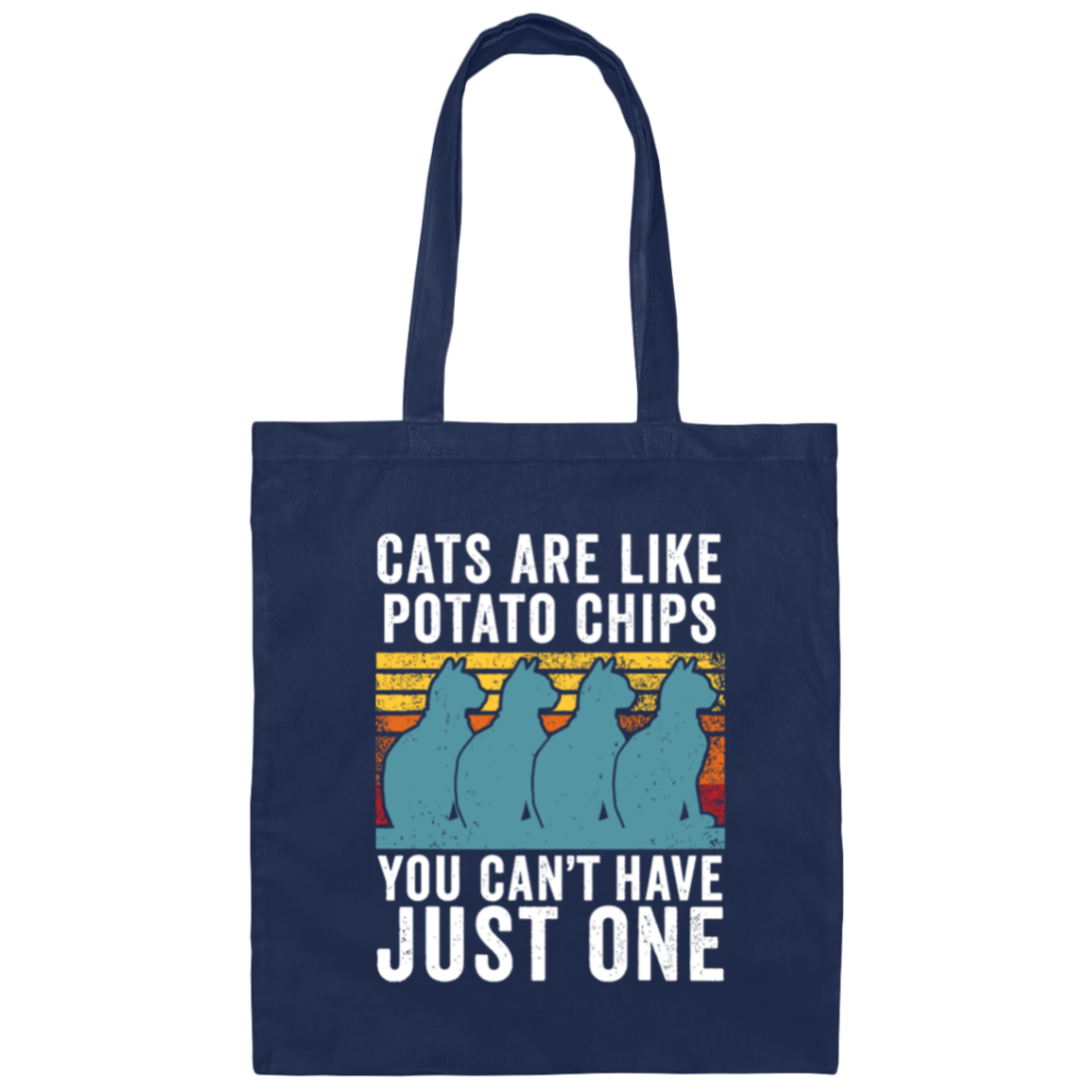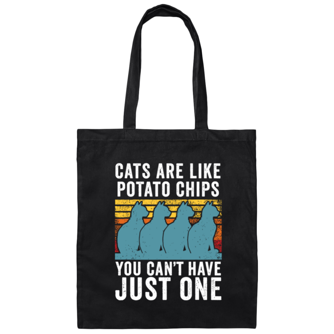 Cats Are Like Potato Chips, You Cannot Have Just One, Retro Cat Lover Canvas Tote Bag