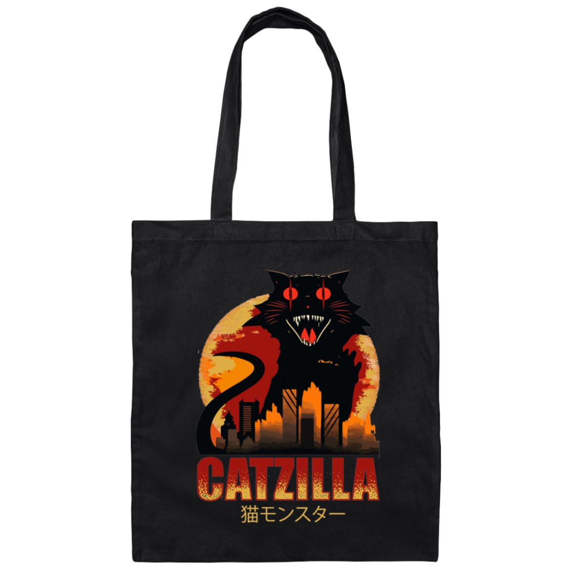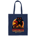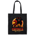 Catzilla In Tokyo City, Horror Cat, Black Cat, Angry Cat Canvas Tote Bag