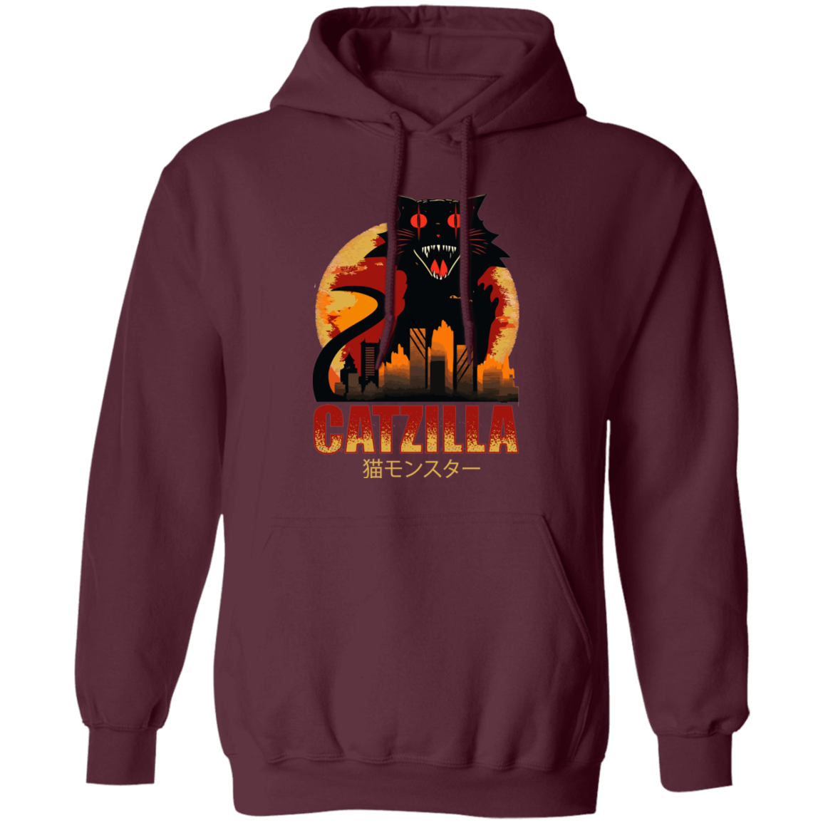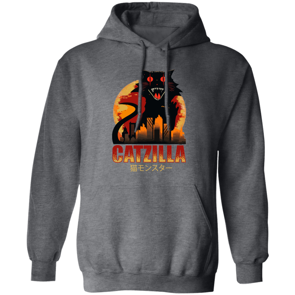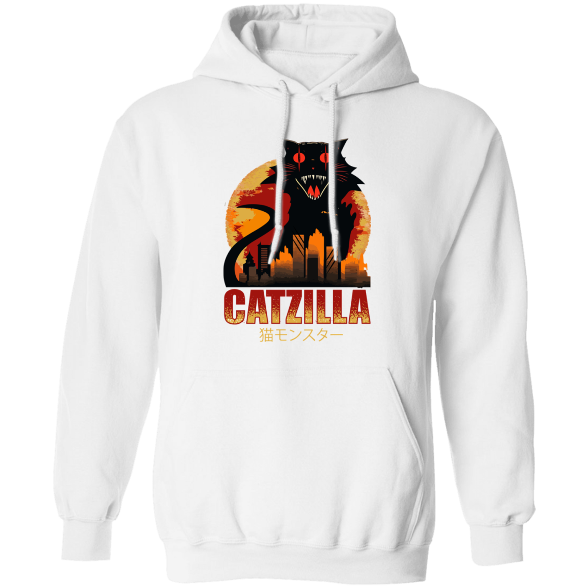 Catzilla In Tokyo City, Horror Cat, Black Cat, Angry Cat Pullover Hoodie