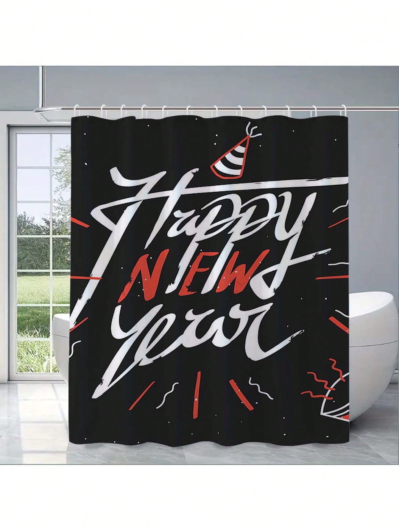 Celebrate in Style: Happy New Year Waterproof Satin Shower Curtain – Machine Washable Bathroom Decor