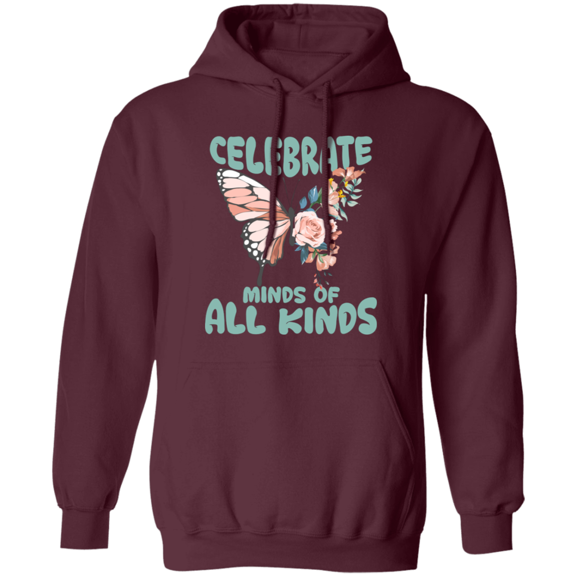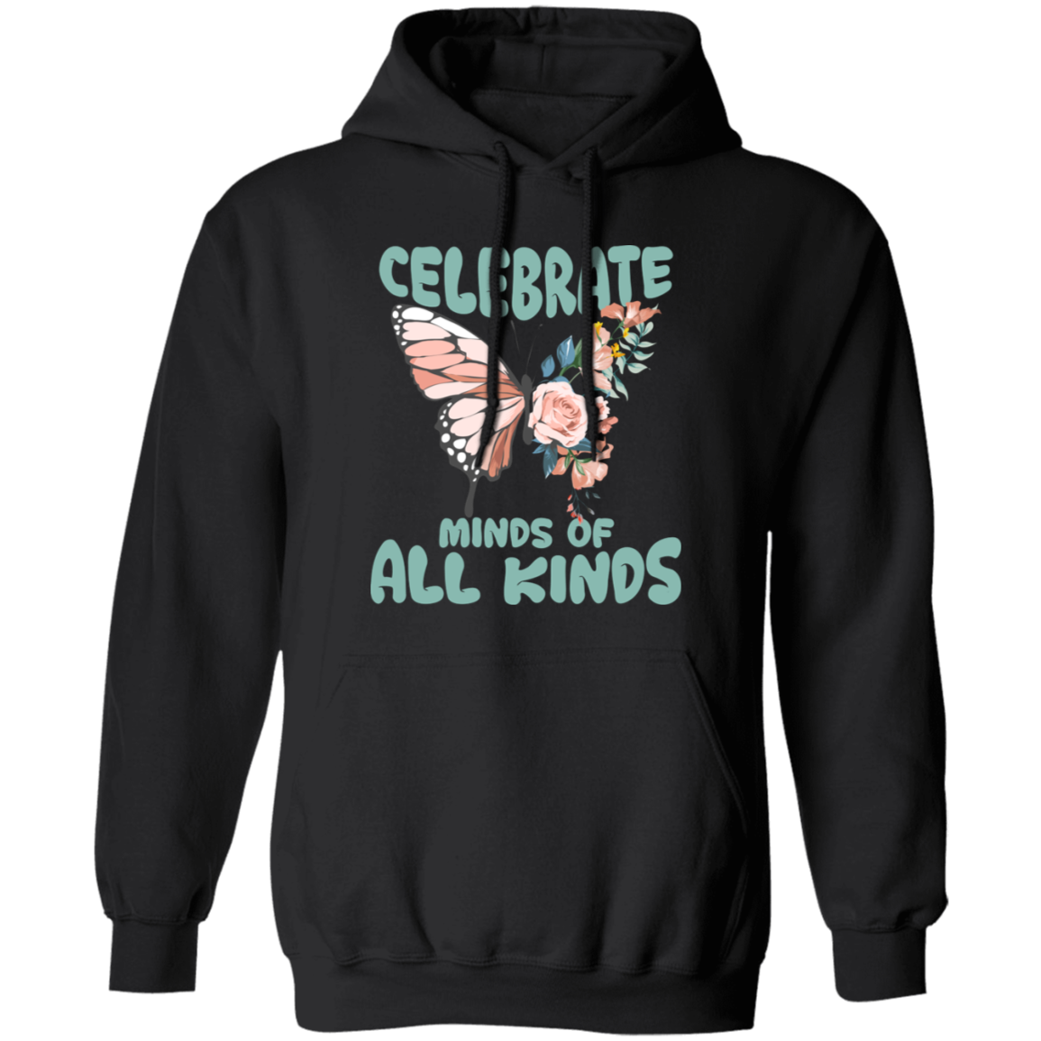 Celebrate Minds Of All Kinds, Butterfly With Half Of Flower Pullover Hoodie